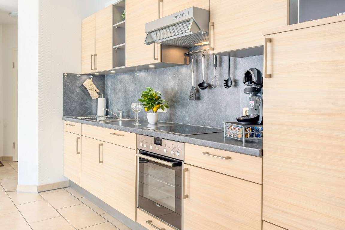 Wohnbereich mit voll ausgestatteter Küche