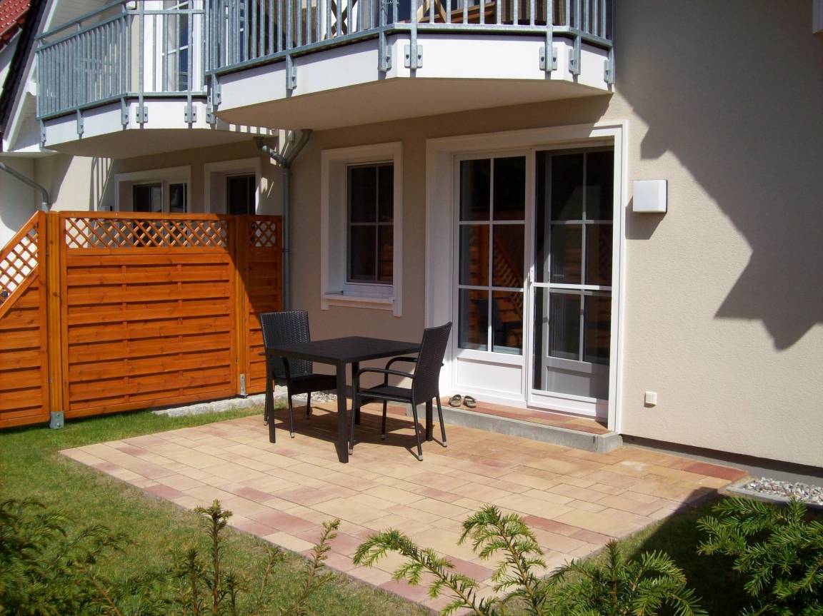 Die sonnendurchflutete Wohnung im Erdgeschoß mit großzügiger Westterrasse und kleinem Garten in ruhiger aber doch zentraler Lage befindet sich in einer der schönsten Ferienregionen der Ostsee, dem Ostseeheilbad Zingst.