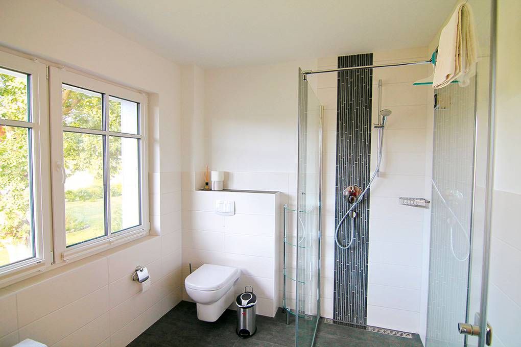 Haus: Komfortable Doppelhaushälfte mit Kaminofen, 2016 neu erbaut. Das Haus besticht durch sein großes Platzangebot: 110 qm Wohnfläche, 4 Schlafzimmer, 2 Bäder. Gehobene Ausstattung mit moderner, geschmackvoller Einrichtung. Kostenloser Internetzugang über W-Lan. Waschmaschine. Zentralheizung. Große Terrasse mit Sitzmöbeln. Schöner, kleiner, eingezäunter Garten mit Fahrradschuppen. 2 Pkw-Stellplätze am Haus.