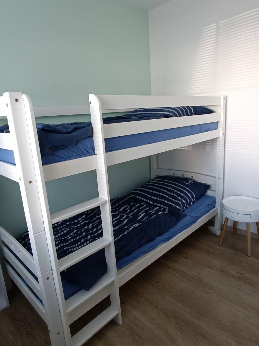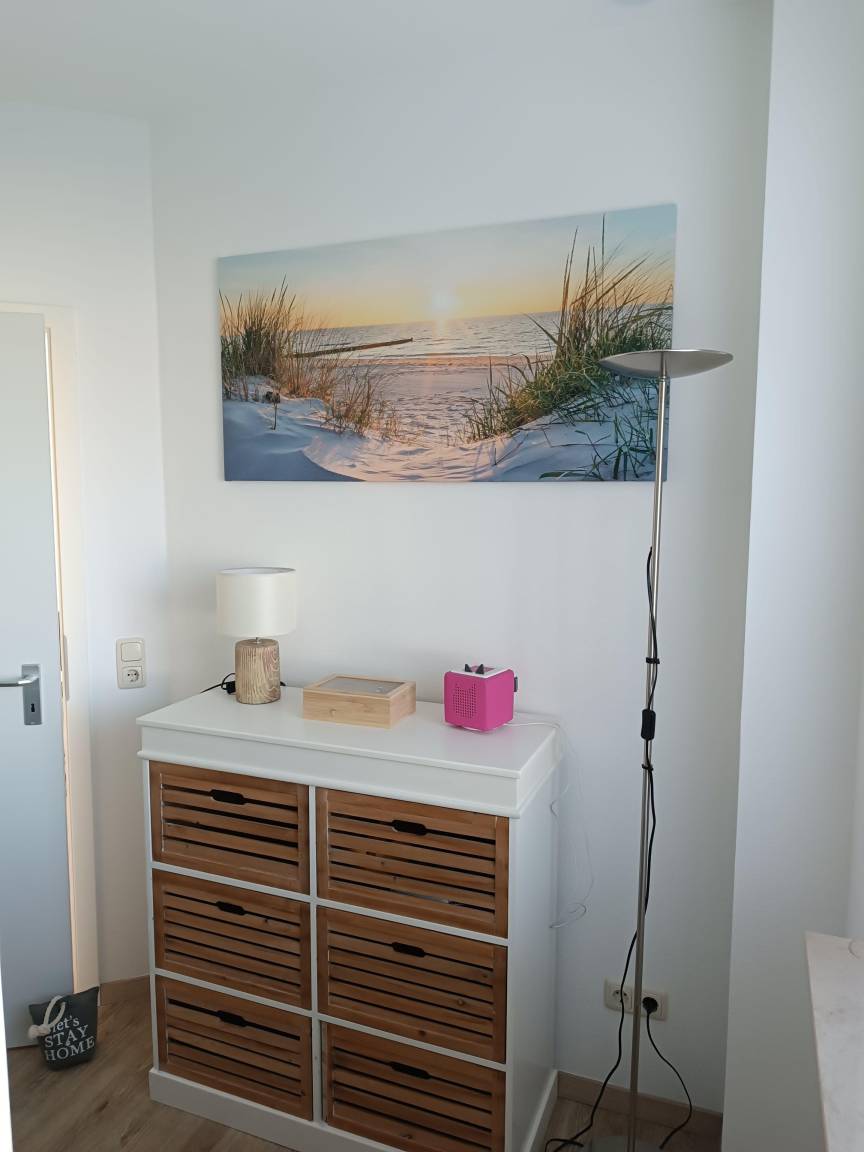 Die Wohnung verfügt über zwei gemütliche Schlafzimmer. Dort befinden sich ein Etagenbett und ein Doppelbett. Auch an unsere kleinen Gäste haben wir gedacht und stellen ein Reisebett und ein Hochstuhl zur Verfügung. Im Duschbad können Sie sich nach einem Strandbesuch mit anschließender Dusche ihre Haare trocknen. Die Küchenzeile ist ausgestattet mit einem Kühlschrank,Geschirrspüler, Backofen mit ElektroHerd, Kaffeemaschine, Wasserkocher, Toaster sowie Geschirr,Töpfe und Besteck. Zur Unterhaltung stehen TV,Brettspiele,Bücher und WLAN für Sie bereit.