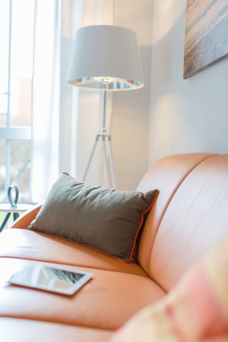 Die Erdgeschosswohnung ist - bis auf eine Stufe zur Terrasse - barrierearm. Eine Fußbodenheizung in Wohnküche, Flur und Bad sorgt für wohlige Wärme. Alle Wohn- und Schlafräume haben TV, W-LAN und elektrische Außenjalousien.