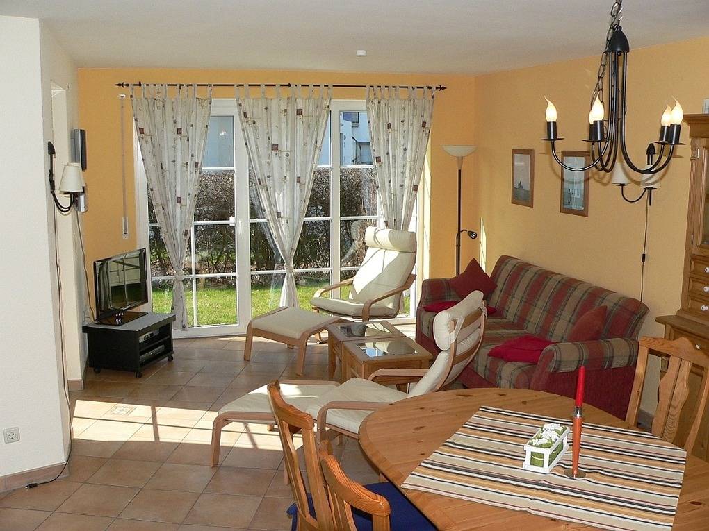 Schöne Ferienwohnung mit 3 Zimmern, für 2-4 Personen, 68 qm Parterre, vollgefliest mit Fußbodenheizung und Kaminofen, Sonnenterrasse und Garten. Ruhige, zentrale Lage, ca. 2 Minuten zum Strand, Parkplatz am Haus. Bad mit großer Duschkabine und WC, Küchenzeile, Geschirrspüler, Kaffeemaschine, Mikrowelle, Toaster, Wasserkocher, Saftpresse, Mixer. TV mit SAT-Anschluss, Videorecorder und Stereoanlage im Wohnbereich, zweiter TV mit SAT-Anschluss im "Elternschlafbereich". Radiowecker in beiden Schlafzimmern, sehr gut für Allergiker geeignet, keine Haustiere. Die Wohnung ist für Paare und Familien ideal, Waschmaschine und Wäschetrockner ohne Aufpreis,