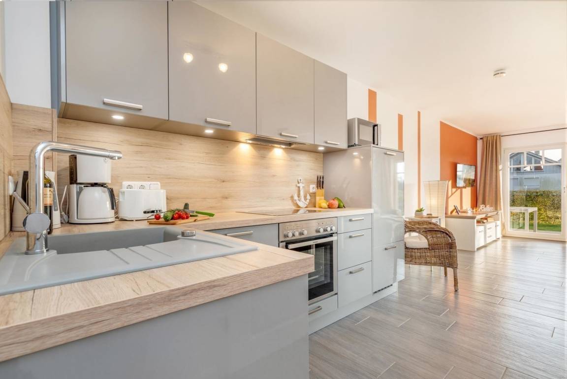Die Küchenausstattung lässt keine Wünsche offen: Ein Elektro-/Gasherd, Backofen, Geschirrspüler, Mikrowelle, Kühlschrank mit Gefriermöglichkeit sowie eine Kaffeemaschine und ein Toaster stehen bereit. Zum Wohnbereich gehört ein komfortables Sofa, ein Fernseher und eine HiFi-Anlage. WLAN ist ebenfalls vorhanden, und die Räume sind allergikergeeignet. Fußbodenheizung und Fliegengitter sorgen für zusätzlichen Komfort, während Brettspiele für gesellige Abende einladen. Dies ist der ideale Ort für einen entspannten Urlaub, wo jedes Detail für das Wohlbefinden der Gäste bedacht wurde.