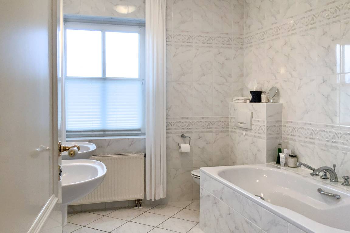 Modernes Badezimmer mit Badewanne, Dusche und WC
