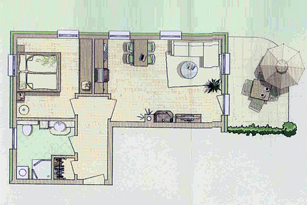 50 m² Ferienwohnung ∙ 1 Schlafzimmer ∙ 2 Gäste