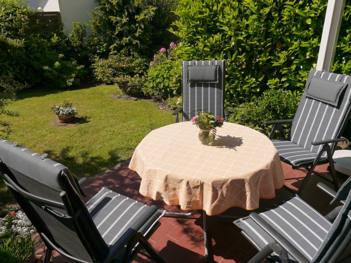 Außerdem stehen Ihnen in der Erdgeschosswohnung eine Terrasse mit Gartenmöbeln, Sonnenschirm, Wäscheständer und Elektrogrill, sowie ein PKW-Stellplatz direkt vor dem Haus und ein Abstellraum für Fahrräder zur Verfügung. Haustiere sind in dieser Wohnung nicht gestattet.