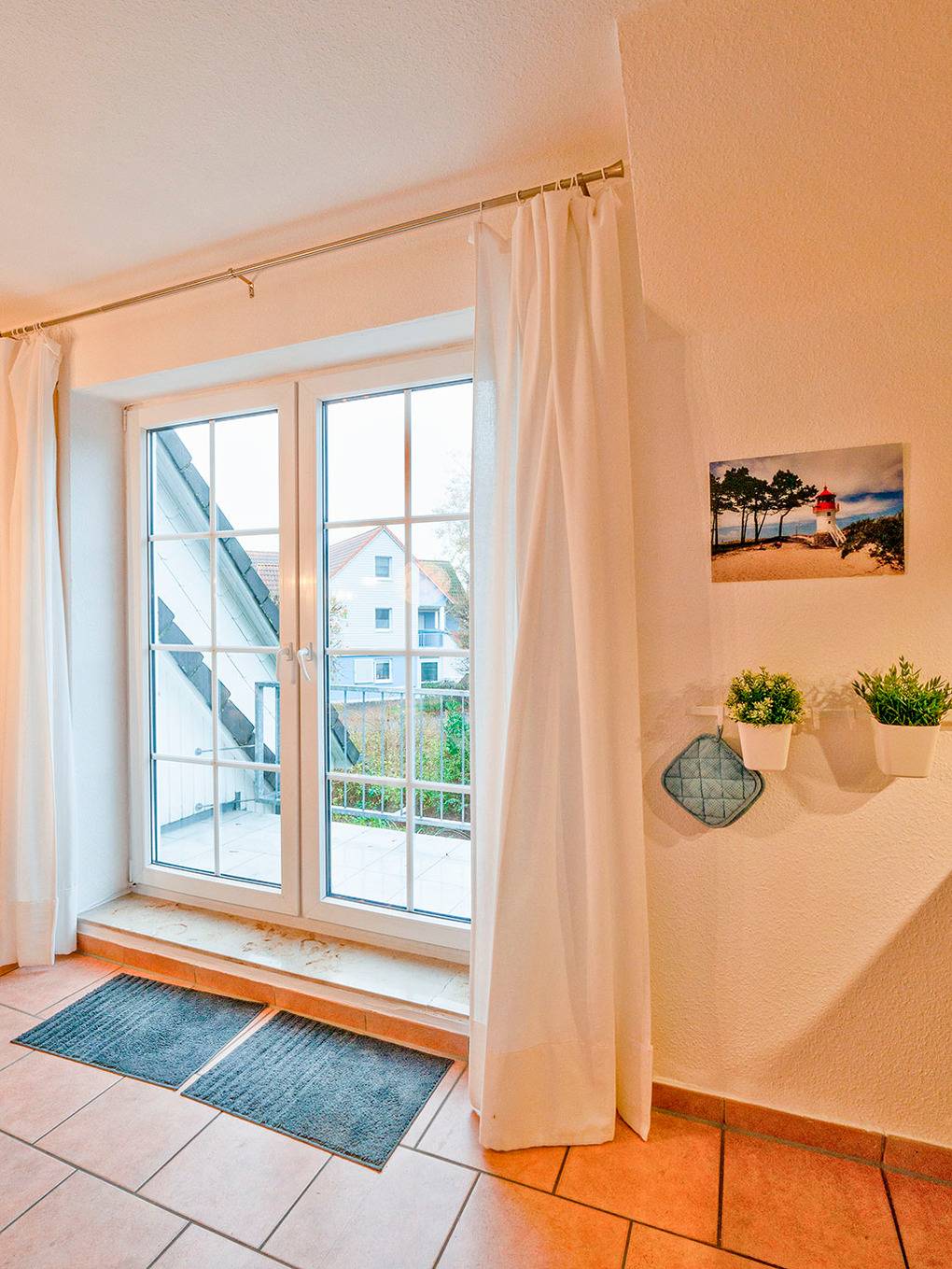Haus: Schöne, moderne Reihenhäuser mit jeweils 5 Ferienwohnungen. Freundliche, geschmackvolle Einrichtung. Jede Fewo mit Sat-TV, Spülmaschine, meist auch mit Waschmaschine. Kostenloser Internetzugang über W-Lan. Zentralheizung. Nichtraucherwohnungen. 1 Pkw-Stellplatz /Fewo.