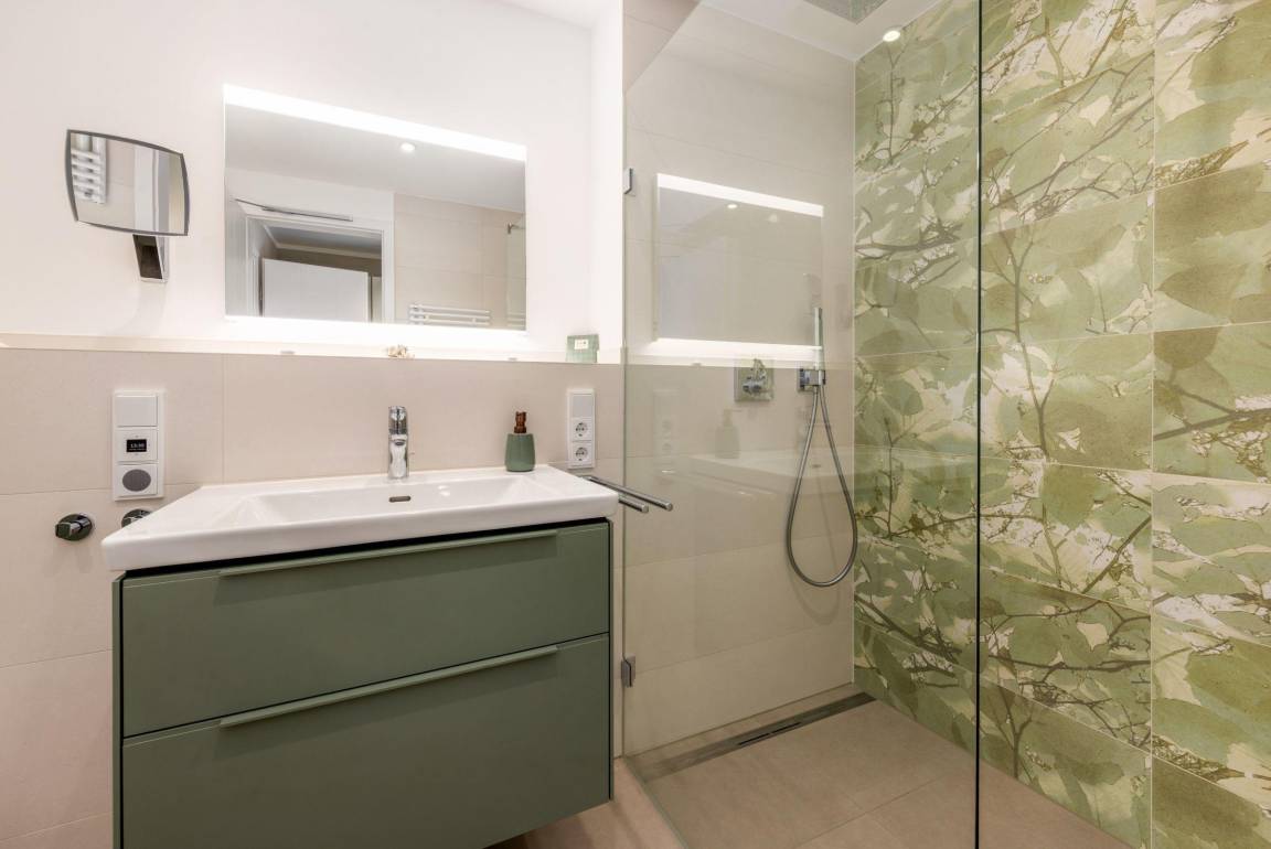 Das exklusive Penthouse in der Strandvilla Zingst erstreckt sich über 115 m² und bietet Platz für bis zu vier Personen. Es verfügt über zwei stilvoll gestaltete Schlafzimmer sowie einen offenen Wohn- und Essbereich, der eine hochwertige, voll ausgestattete Küche umfasst. Zu den Küchengeräten zählen ein Induktionsherd, Elektro-Backofen, Geschirrspüler und Kühlschrank mit Gefrierfach. Zwei moderne Badezimmer mit offenen Duschen und weiteren Annehmlichkeiten sorgen für zusätzlichen Komfort. Ein besonderes Highlight ist die private Sauna, die zur alleinigen Nutzung bereitsteht. Die Wohnung ist allergikergeeignet und bietet Fußbodenheizung sowie Sichtschutz an allen Fenstern. Eine überdachte Dachterrasse mit Gartenmöbeln und Sonnenliegen sowie zwei private Parkplätze in der Tiefgarage runden das Angebot ab. In der Nähe befinden sich Einkaufsmöglichkeiten und Restaurants.
