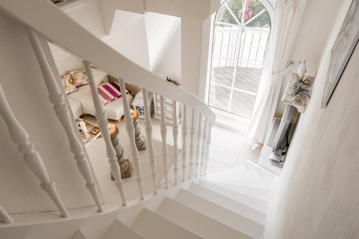 „Die Einrichtung der Wohnung sehr schön und gemütlich. Der weiße Balkonzaun müßte mal gereinigt werden und die Paneele auf dem Balkon erneuert werden.“
