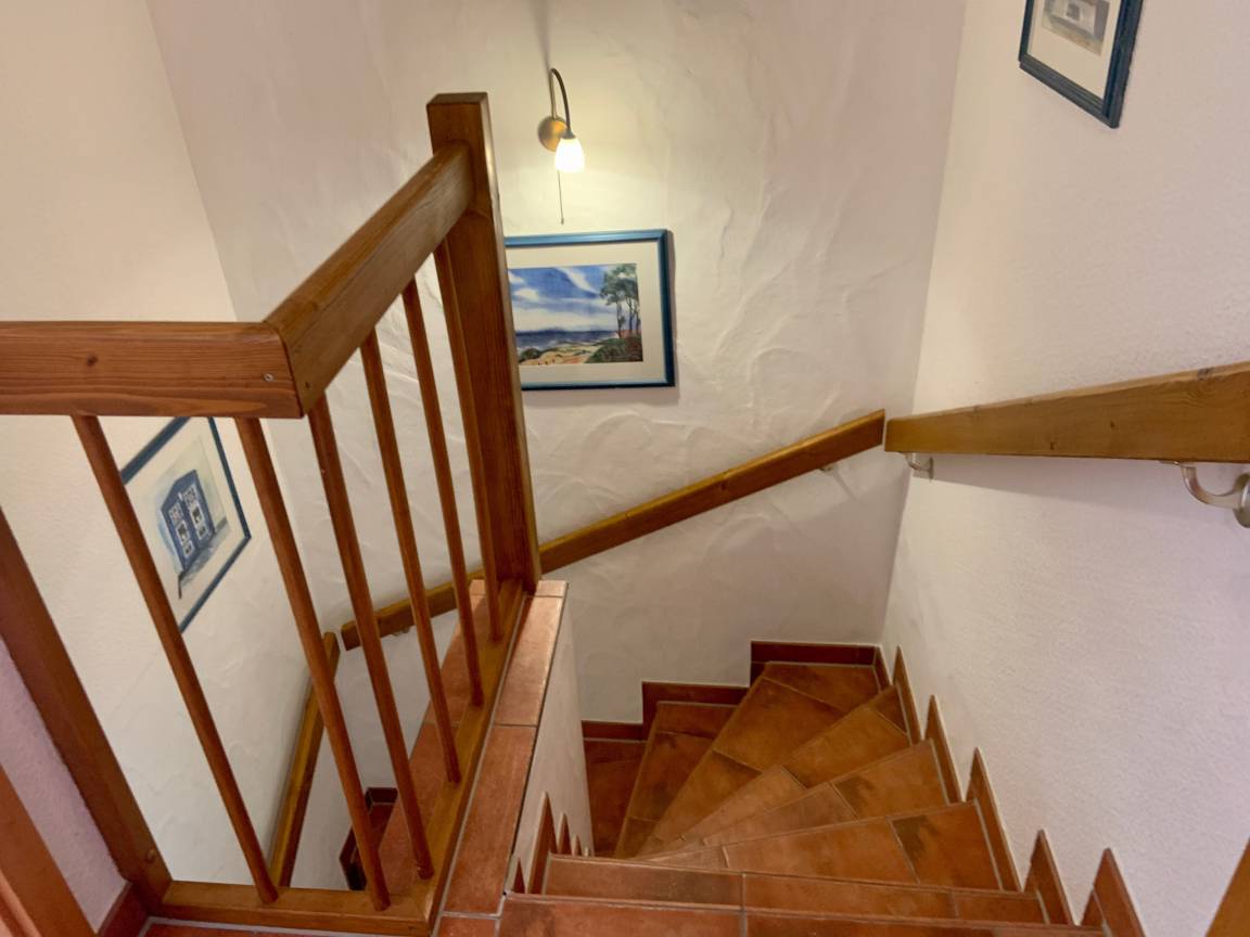 Das Wohnzimmer ist rustikal eingerichtet und die Küche ist komplett ausgestattet, sodass es an nichts fehlen wird. Die zwei Schlafzimmer im Obergeschoss verfügen jeweils über ein Doppelbett. Die zwei Bäder sind jeweils mit einer Dusche ausgestattet. Im Erdgeschoss werden die Räume dur eine Fußbodenheizung beheizt.