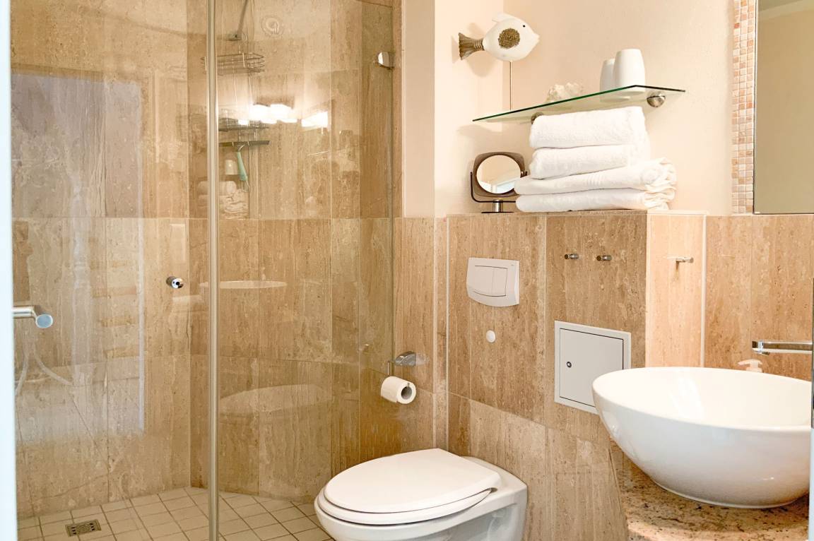 Nach einem erlebnisreichen Tag an der frischen Ostseeluft lädt die Gemeinschaftssauna der Wohnanlage zum Entspannen ein und bietet die ideale Möglichkeit, zur Ruhe zu kommen. Beginnen Sie den Tag auf dem nach Südwesten ausgerichteten Balkon mit einem gemütlichen Frühstück oder genießen Sie abends die letzten Sonnenstrahlen – hier finden Sie Ruhe und Erholung.
