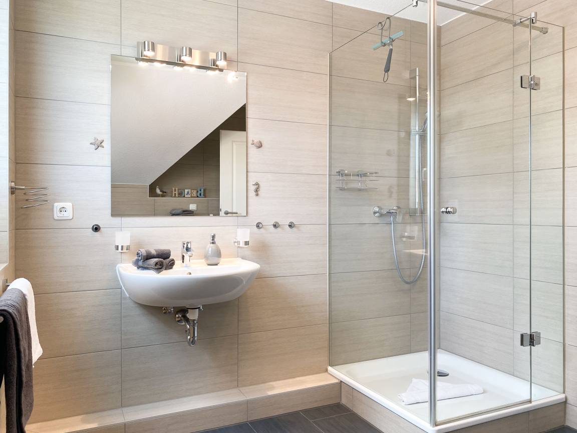 Zwei Badezimmer: eines mit Dusche im Erdgeschoss, ein weiteres im Obergeschoss