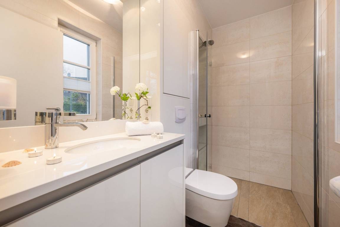 Das Ferienhaus Zingst bietet eine moderne und stilvolle Unterkunft, nur 150 m von der Ostsee entfernt. Auf 90 qm stehen zwei großzügige Schlafzimmer mit Doppelbetten (180x200 und 160x200) und jeweils einem Fernseher zur Verfügung. Zwei voll ausgestattete Badezimmer mit WC und Dusche gewährleisten höchsten Komfort. Im offenen Wohn- und Essbereich mit Kamin lässt sich gemütlich entspannen und gemeinsam speisen. Die exklusive Wohnküche, ausgestattet mit einem Wrasenabzug, lädt zum gemeinsamen Frühstück ein. Ein Highlight ist der Ruheraum im Spitzbogen, ideal zum Lesen oder Entspannen. Zur Ausstattung gehören zwei Parkplätze direkt vor dem Eingang und ein Fahrradabstellplatz im Freien. Hinweis: Kinder und Babys sind in dieser Unterkunft nicht gestattet.