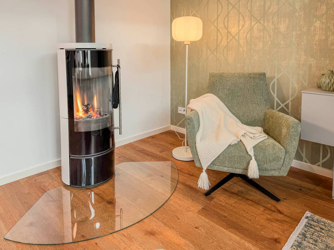 Das Ferienhaus Kraanstiet 3 empfängt Sie mit einer warmen und einladenden Atmosphäre, die sofort ein Gefühl von Zuhause vermittelt. Der Wohnbereich mit Kamin bildet das Herz des Hauses – ein Ort für gemütliche Abende, entspannte Gespräche oder ruhige Stunden nach einem erlebnisreichen Tag an der frischen Ostseeluft.