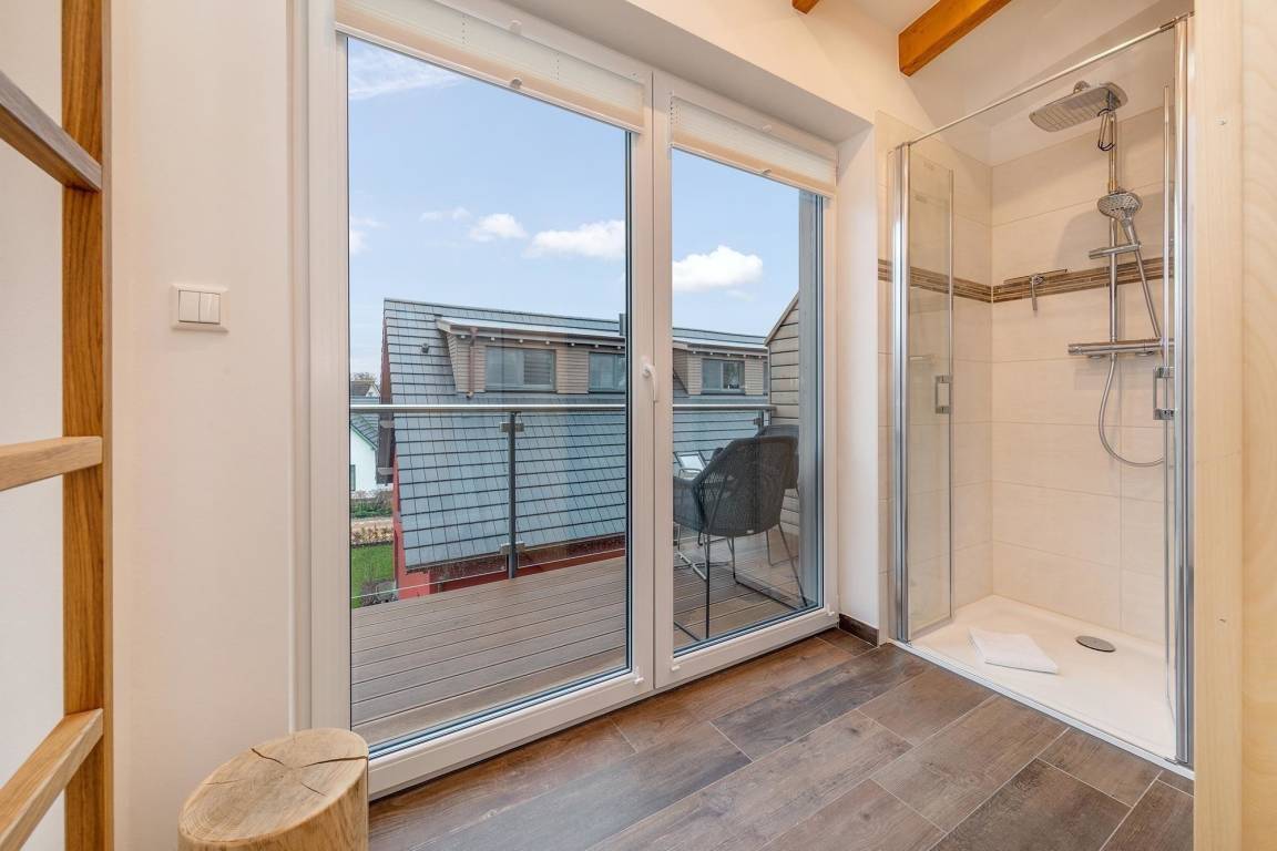 Die Suite Strandluft bietet bis zu 4 Personen perfekten Komfort in Zingst, nur 150m vom Strand entfernt, mit eigener Sauna, modernen Balkonen und exklusiver Ausstattung für einen traumhaften Ostseeurlaub.