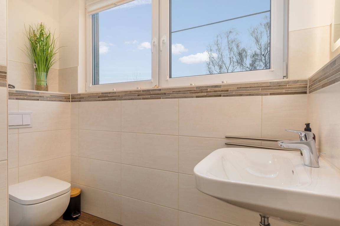 Die exklusive Suite Strandluft befindet sich in der Ferienanlage Strandwiese, nur 150 Meter vom Ostseestrand entfernt. Diese Maisonette umfasst großzügige 83 m² und bietet Platz für bis zu 4 Personen. Im ersten Obergeschoss befindet sich ein Schlafzimmer mit einem Doppelbett (180 x 200 cm) und ein modernes Badezimmer mit bodengleicher Dusche und Doppelwaschtisch. Der offene Wohn- und Essbereich lädt mit Zugang zu einem Balkon zum Entspannen ein. Im zweiten Obergeschoss erwartet die Gäste ein weiteres Schlafzimmer, ebenfalls mit einem Doppelbett (180 x 200 cm) und eigenem Badezimmer mit bodengleicher Dusche. Eine Sauna, die ebenfalls mit einem Balkon und einer Dusche ausgestattet ist, sorgt für zusätzlichen Komfort. Eine Tiefgarage mit einer maximalen Durchfahrtshöhe von 2,00 m ist ebenfalls vorhanden. Die Suite überzeugt durch hochwertige Ausstattung und liebevolle Betreuung.