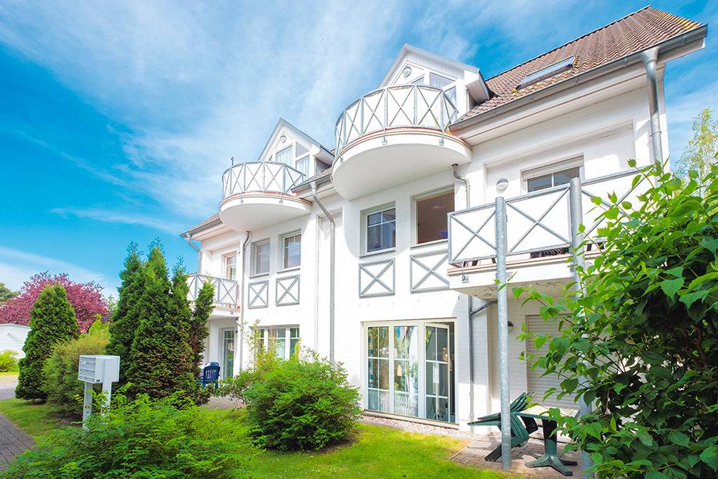 Haus: Moderne Apartmenthäuser mit komfortablen Ferienwohnungen in beschaulicher Lage am Bodden. Geschmackvolle, komfortable Möblierung. Zentralheizung. Nichtraucherwohnungen. Terrasse mit Sitzmöbeln. Fahrradschuppen. 1 Pkw-Stellplatz/Fewo.