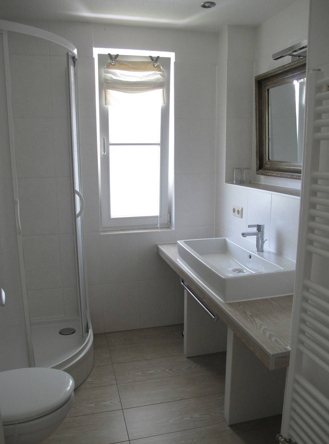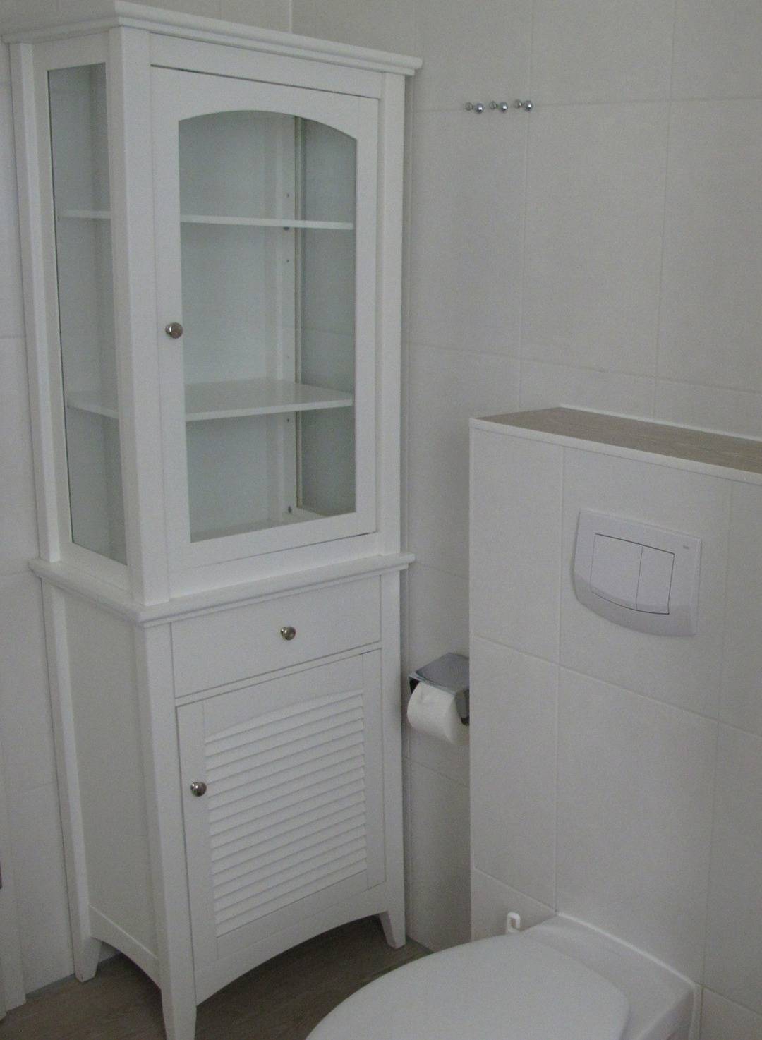 Das Bad ist mit einem Tageslichtfenster ausgestattet. Einen kleine Abstellkammer in der Wohnung gehört genauso dazu, wie ein eigener, abgeschlossener Gartenschuppen für Fahrräder und Strandutensilien.