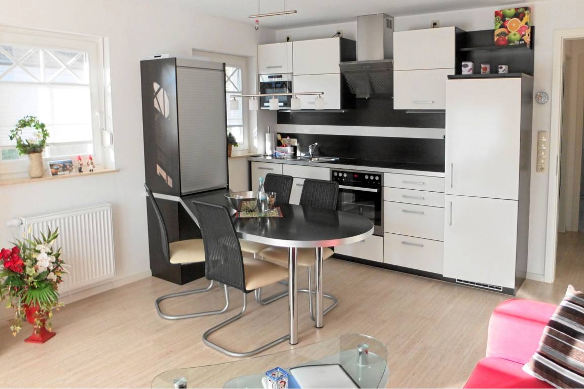Der großzügige Wohnraum integriert eine vollständig ausgestattete Küche mit 98er Arbeitshöhe in offener Bauweise mit angrenzendem Esstisch. Bei entsprechender Wetterlage wird der Wohnraum vom Frühstück bis zum Abend von Sonnenschein durchflutet. Im Wohnraum/Schlafraum befindet sich neben WLan auch ein DSL LAN Internetzugang (LAN Kabel RJ 45 bitte mitbringen), ein Telefonanschluss für ankommende Gespräche, eine HiFi Anlage mit FM und DAB+ Radio, CD und DVD Player, sowie ein 42 Zoll LED Smart SAT HD -TV. Ein weiterer 32 Zoll HD LCD Fernseher und ein DSL LAN / WLan Zugang befindet sich im Schlafraum.