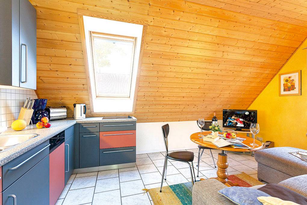 D 67.30 Wohnung 1-3 Pers.: Freundliche 2-Zimmerwohnung mit 40 qm Wohnfläche, 1. Etage. Wohn-/Essraum mit Couchgarnitur (Ausziehcouch 1 Pers.), Sat-TV, Radio-CD, moderner Küchenzeile (2 Pl. E-Herd, Spülmaschine, Mikrowelle). Doppelzimmer. Bad/WC.
