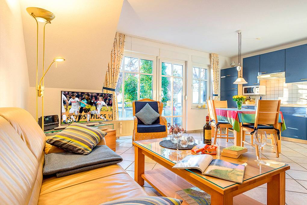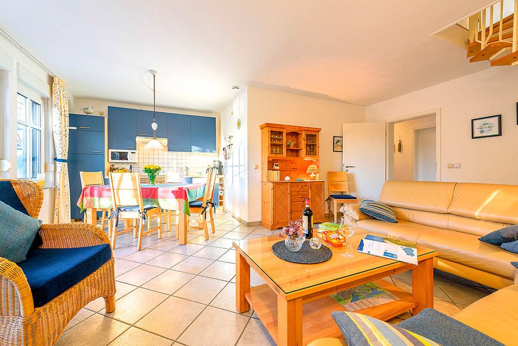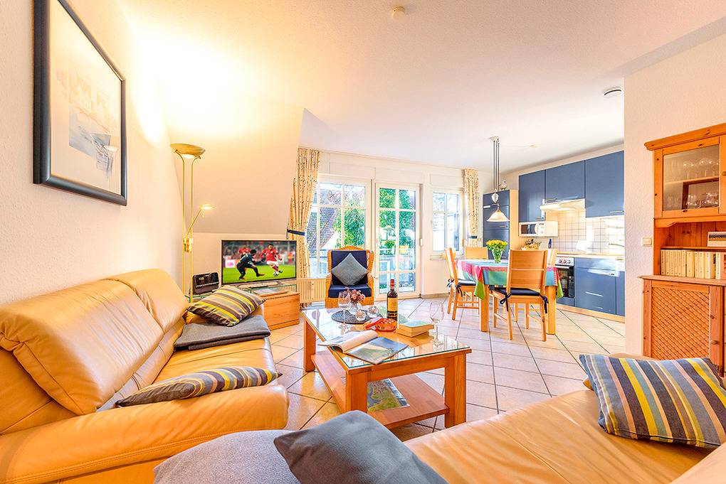 Nebenkosten 45,50 €/Pers. (werden bei Buchung erhoben). Kurtaxe. Bettwäsche leihbar 13 €/Pers (Bestellung, wird bei Buchung erhoben). Handtücher leihbar 9 €/Pers (Bestellung, wird bei Buchung erhoben). Zusätzliche Leistungen Kostenloser Internetzugang über W-Lan. Kostenlose Saunanutzung. 1 Pkw-Stellplatz im Preis inklusive. Kinder Babybett zusätzlich zur maximalen Personenzahl 2,50 €/Tag (Bestellung, wird bei Buchung erhoben). Hochstuhl 2,50 €/Tag (Bestellung, wird bei Buchung erhoben). Haustier nicht erlaubt.Räume & Aufteilung