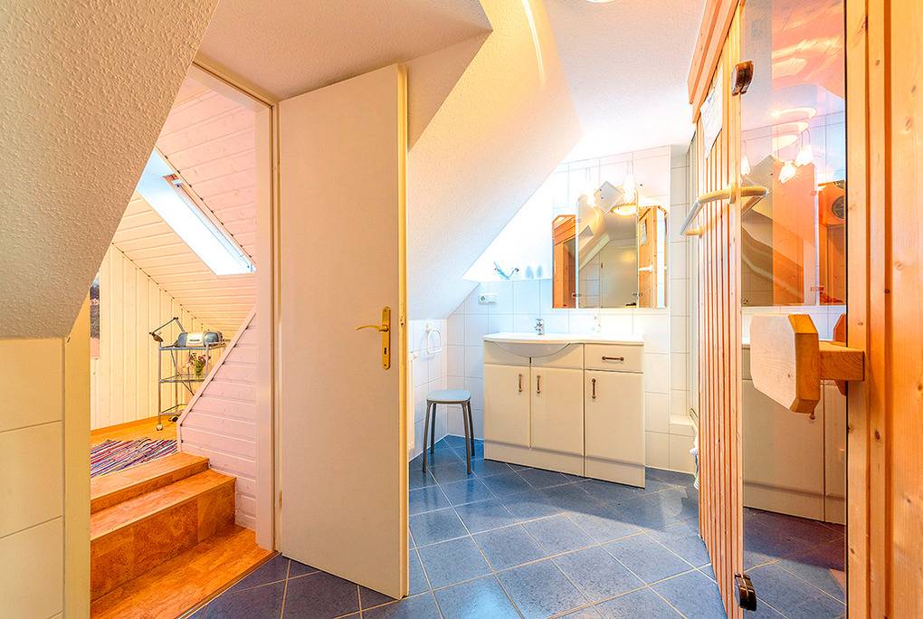 Haus: Modernes Apartmenthaus. Großzügige Ferienwohnung mit eigener Sauna. Geschmackvolle, komfortable Einrichtung. Kostenloser Internetzugang über W-Lan. Zentralheizung. Fahrradschuppen. Pkw-Stellplatz.