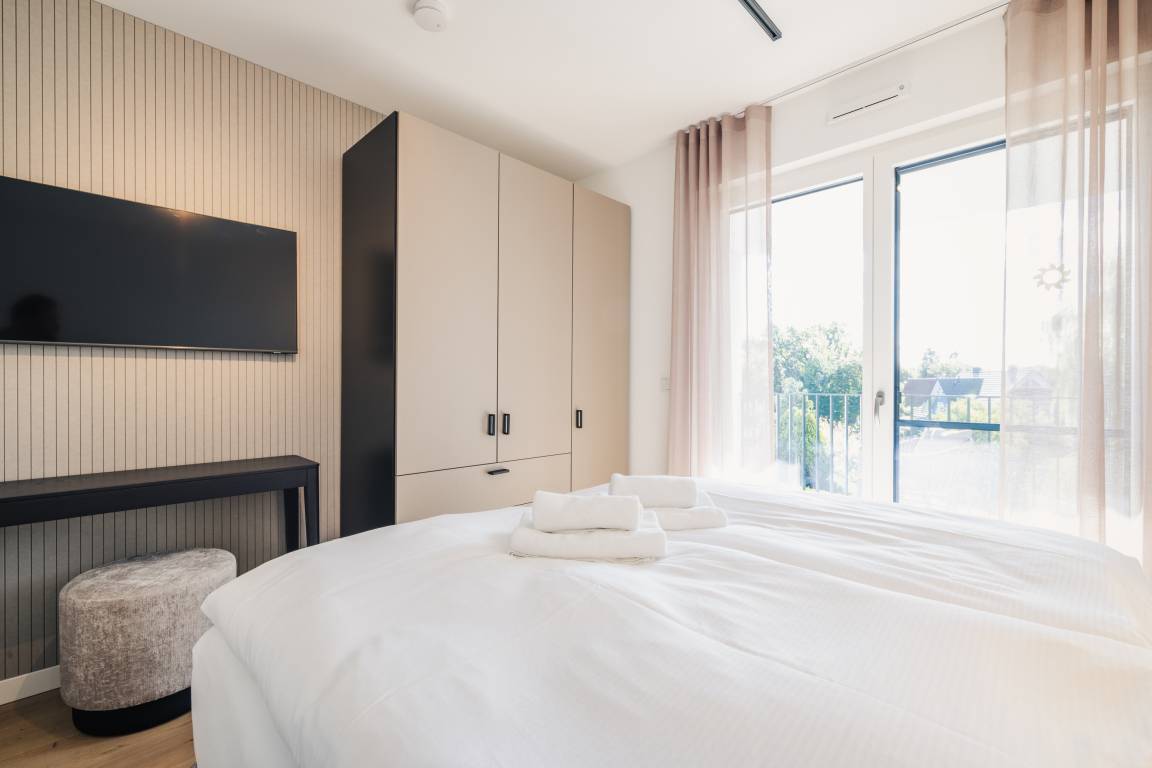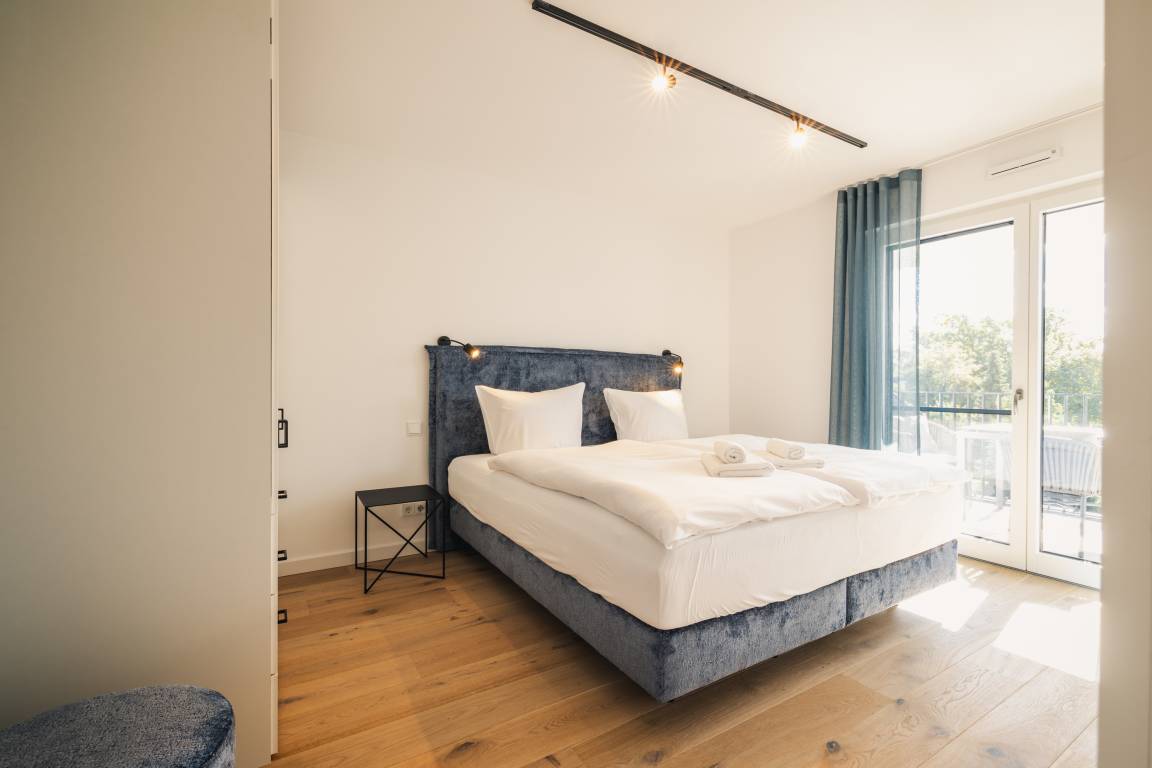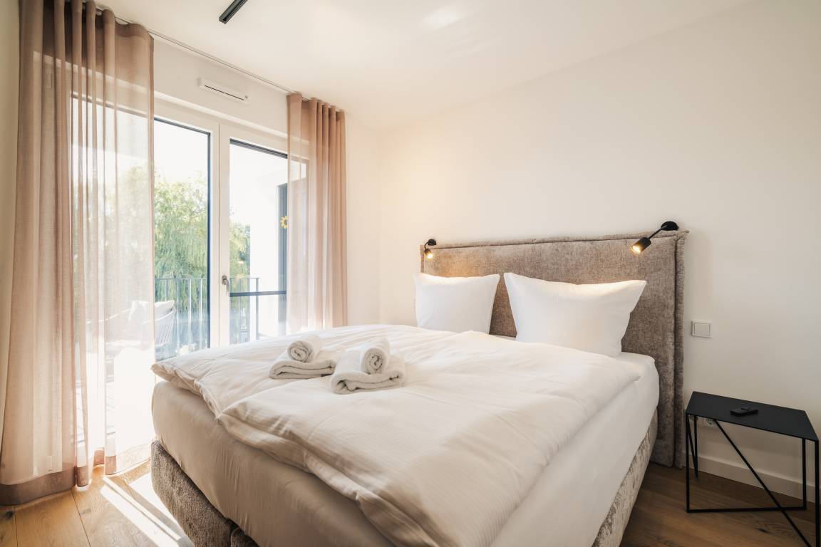 Zwei einladende Schlafzimmer, jeweils mit direktem Zugang zur Balkon – perfekt für entspannte Momente im Freien.