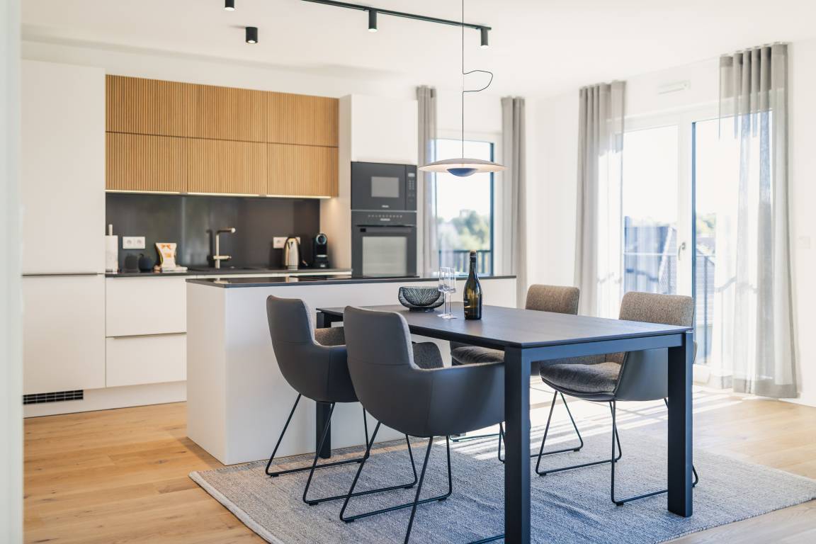 Willkommen in Ihrem Ferienappartement im Grünen Weg 7 – einem neu geschaffenen Wohlfühlort. Hier erwartet Sie modernes Design, hochwertige Ausstattung und eine ruhige Lage ganz nah an der Ostsee.