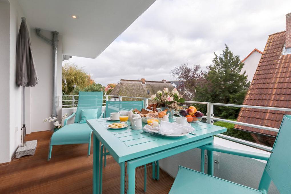 Balkon: Sonniger Südbalkon mit Designer-Möbeln, ideal zum Entspannen und Genießen der frischen Ostseeluft.