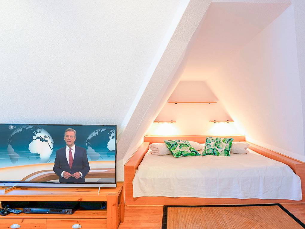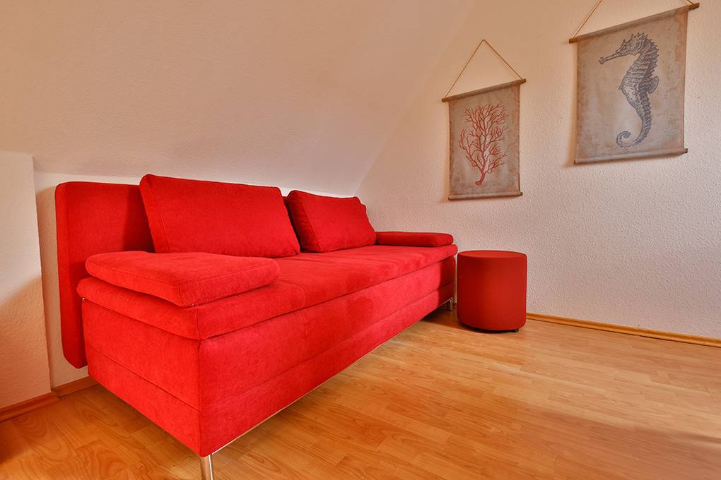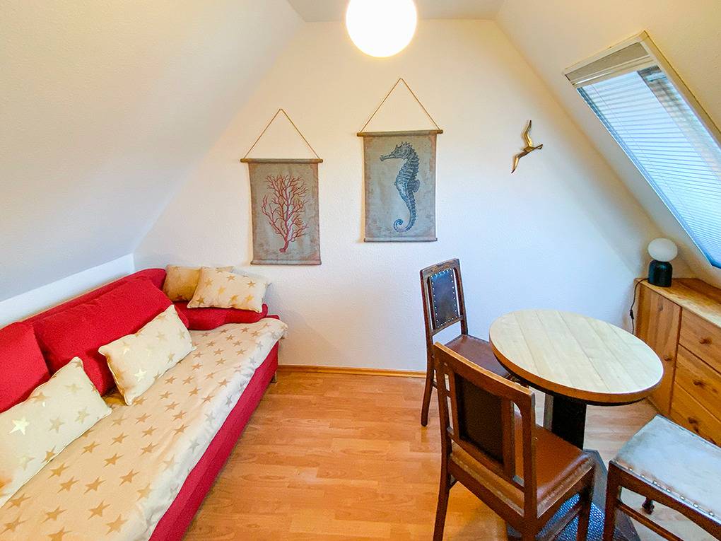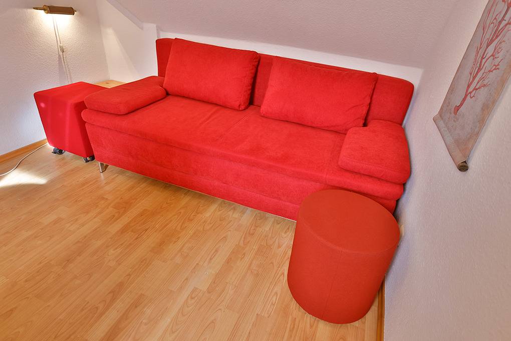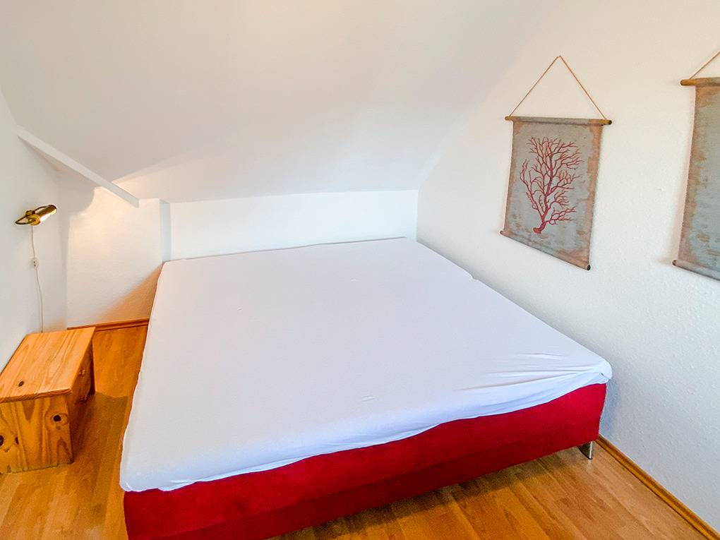 D 67.6209 Wohnung 1-7 Pers.: Großzügige, moderne 4-Zimmerwohnung mit 82 qm Wohnfläche über 2 Etagen, 1. Etage. Wohn-/Essraum mit Couchgarnitur, Sat-TV (Smart TV), DVD, Esstisch, gut ausgestatteter Einbauküche (Backofen, Mikrowelle, Spülmaschine). Doppelzimmer. Bad: Dusche/Badewanne, Waschbecken, WC. Wendeltreppe ins ausgebaute Dachgeschoss: Doppelzimmer mit Ausziehcouch (2 Pers.), gemütlicher Sitzecke, Radio/CD. Geräumiges 3-Bettzimmer mit Doppelbett in Raumnische, Ausziehcouch (1 Pers), Sat-TV (Smart-TV). Bad: Waschbecken, WC, Waschmaschine. Fliegenschutzgitter in allen Fenstern und Balkontüren. Großer Balkon mit Sitzmöbeln.