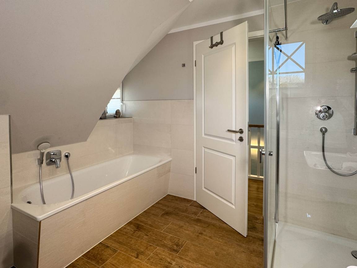 Genießen Sie wohltuende Wärme in der kostenfreien Sauna oder lassen Sie den Tag auf der sonnigen Terrasse im Strandkorb ausklingen. Die Badezimmer mit modernen Annehmlichkeiten sorgen für zusätzlichen Komfort, während der Waschtrockner im Hauswirtschaftsraum Ihren Aufenthalt erleichtert.