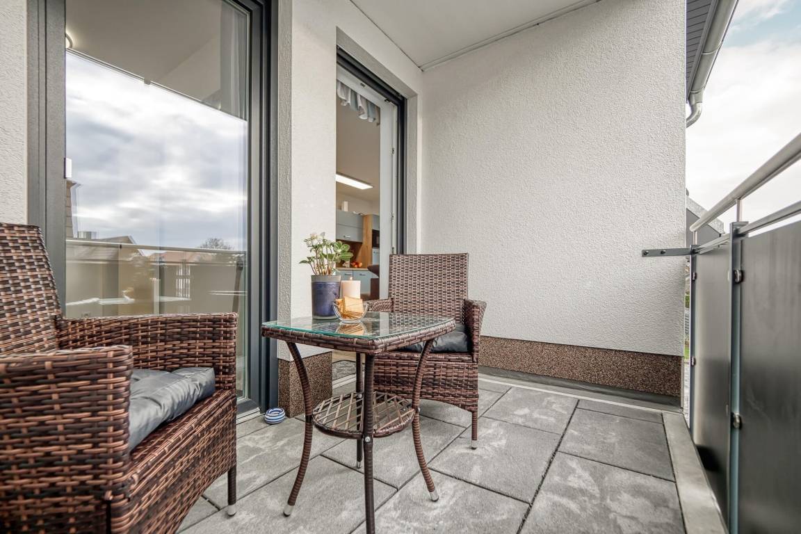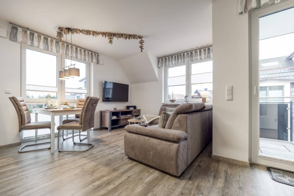 Diese schöne und liebevoll eingerichtete Ferienwohnung befindet sich in zentraler Lage. Sie verfügt über einen gemütlichen Wohnbereich mit einer offenen Küche und einem Essbereich. Vom Wohnzimmer hat man einen direkten Zugang zum möblierten Balkon.