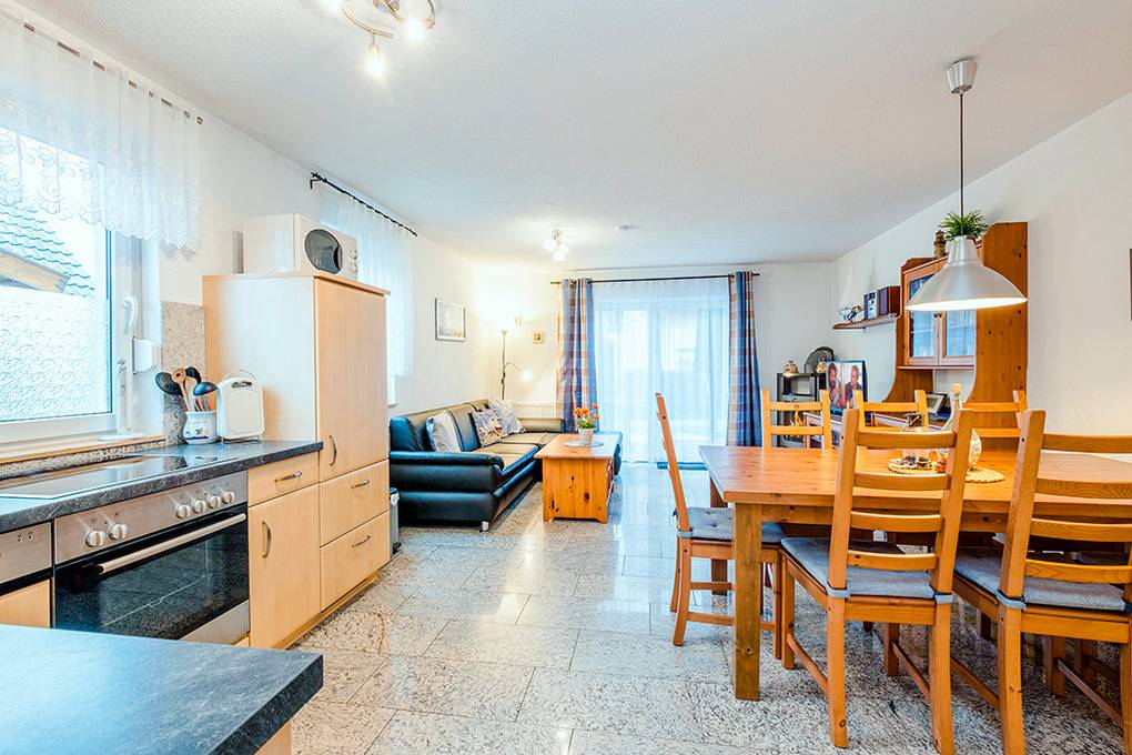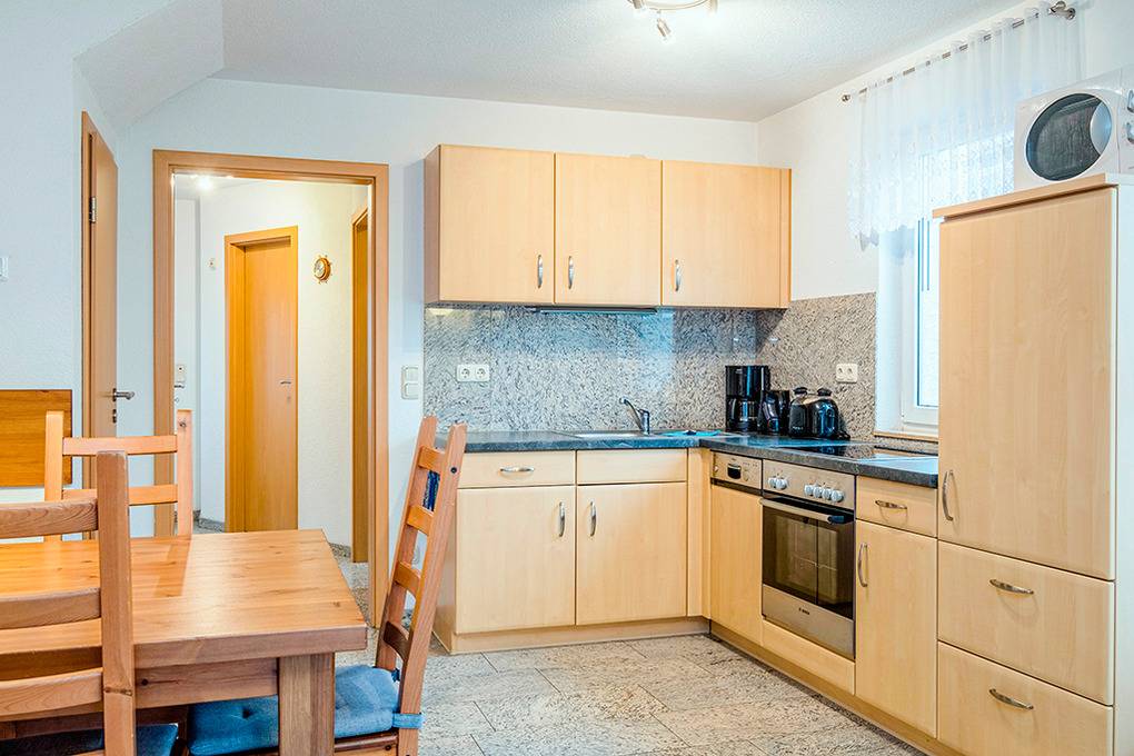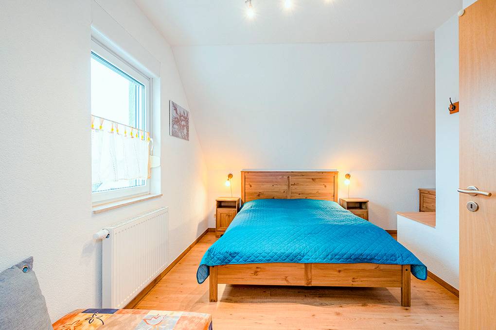 D 67.12A Ferienhaus 1-6 Pers: Schöne 4-Zimmerhaushälfte mit 90 qm Wohnfläche über 3 Etagen. Parterre: Freundlich eingerichteter Wohn-/Essraum mit Kaminofen, Couchgarnitur, Sat-TV, DVD, Flachbild-Sat-TV, Esstisch, moderner Einbauküche (Backofen, Spülmaschine). Abstellraum mit Waschmaschine. Bad/WC. 1. Etage: 2 Doppelzimmer. Bad: Infrarot-Wärmekabine, Du, Wb, WC. Dachgeschoss mit leichten Schrägen: Doppelzimmer mit Sat-TV.