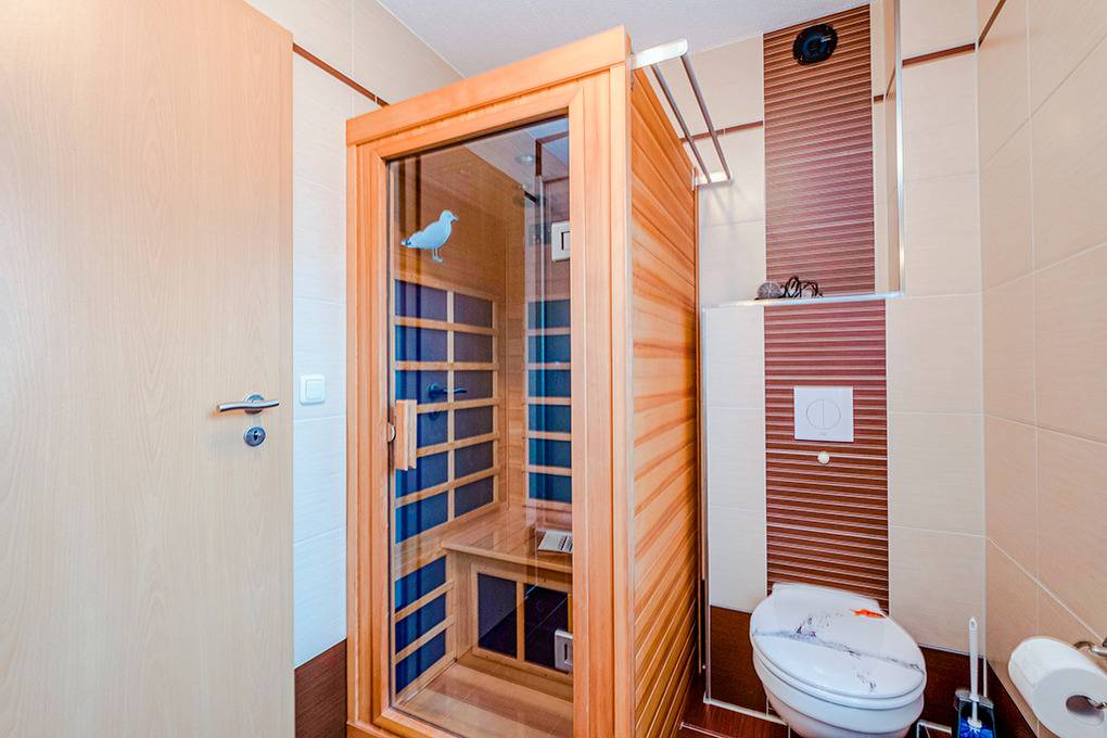 Haus: Komfortable Doppelhaushälften mit Infrarot-Sauna und Kaminofen. Nichtraucherhäuser. Geschmackvolle Einrichtung. Kostenloser Internetzugang über W-Lan. Zentralheizung. Terrasse mit Sitzmöbeln. 2 Pkw-Stellplätze/Ferienhaus.