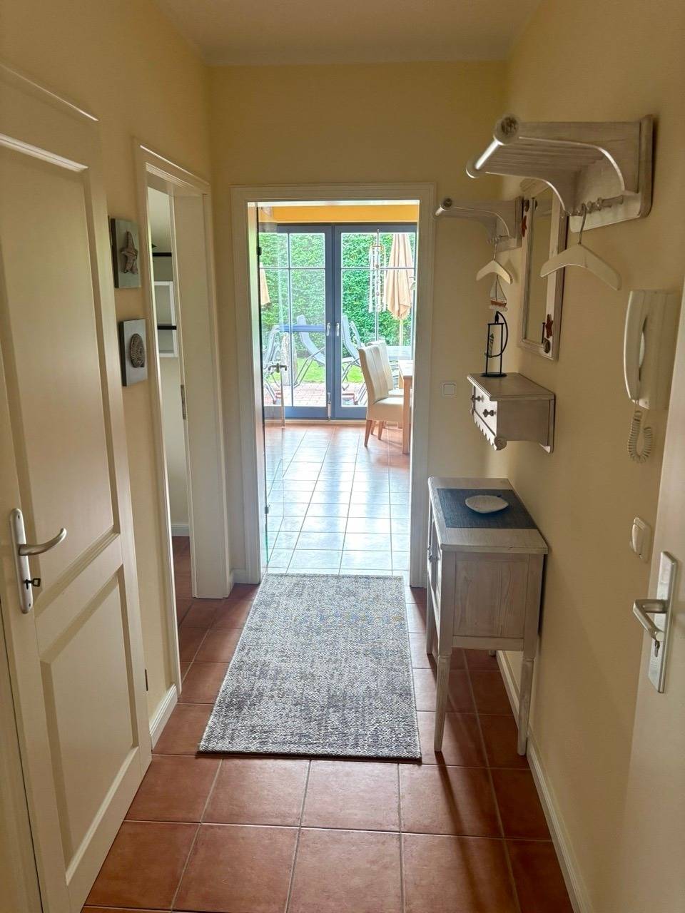 Die Unterkunft verfügt über einen Wohn/Essbereich mit offener komplett eingerichteter Küche, ein Schlafzimmer und einen weiteren Raum mit hochwertigem Schlafsofa sowie ein vollausgestattetes Bad mit Wanne, Dusche und WC, Flur und Abstellraum.