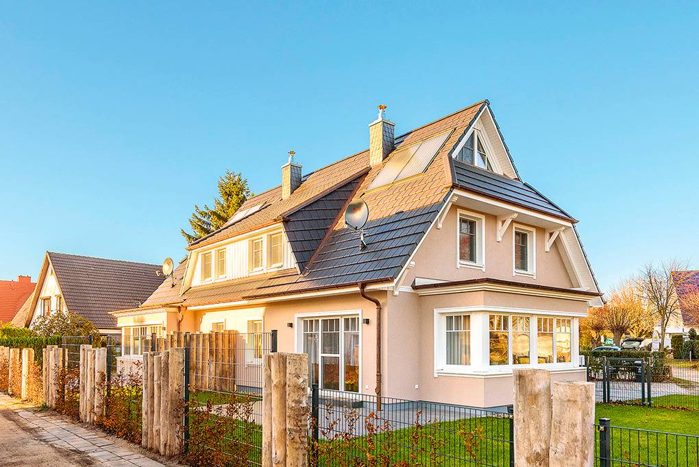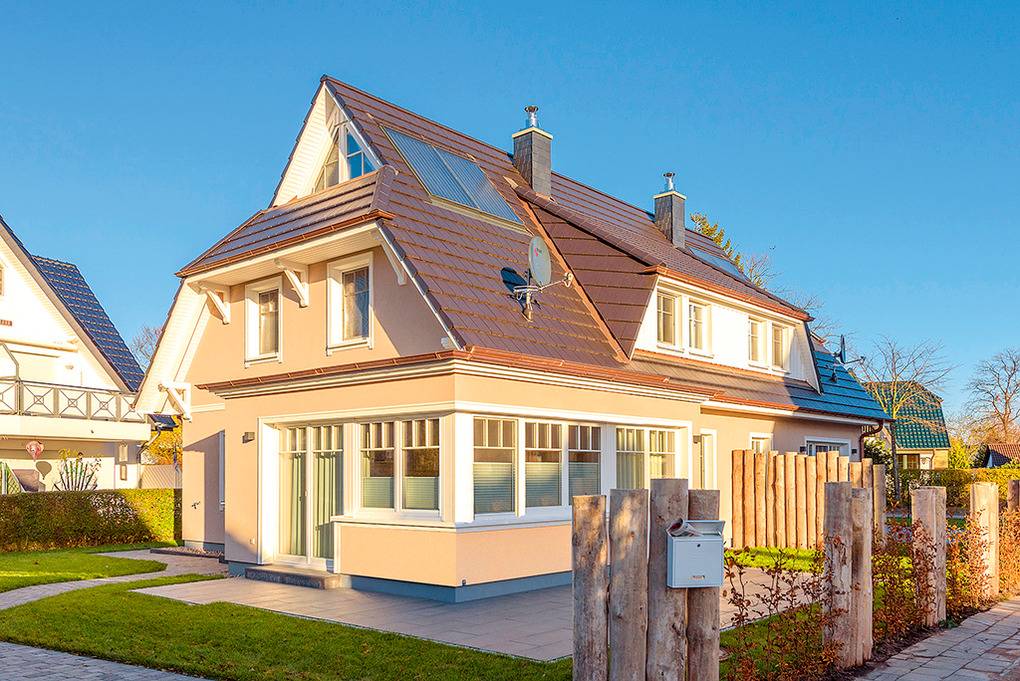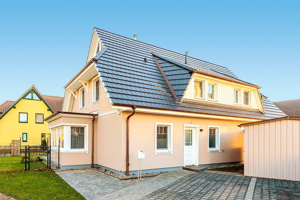 D 67.3 Ferienhaus 1-8 Pers.: Komfortable 5-Zimmerhaushälfte mit 120 qm Wohnfläche über 3 Etagen. Parterre: Großzügiger Wohn-/Essraum (35 qm) mit Kaminofen, Couchgarnitur, Flachbild-Sat-TV, Radio-CD, gemütlicher Essbereich in der Darßer Veranda, gut ausgestattete Einbauküche (Backofen, Mikrowelle, Spülmaschine). Bad: Sauna, Du, WC. 1. Etage: 2 Doppelzimmer, eines davon mit Sat-TV. 2-Bettzimmer mit Ausziehcouch, Sat-TV. Bad: Du, Bw, Wb, WC. Treppe in den Spitzboden: 2-Bettzimmer.