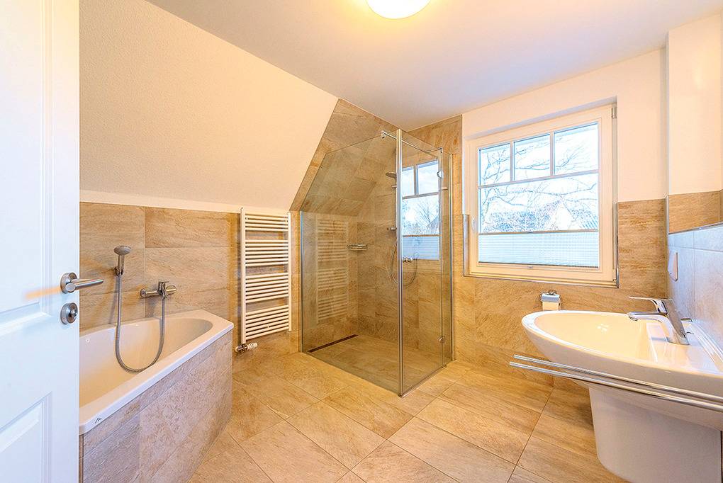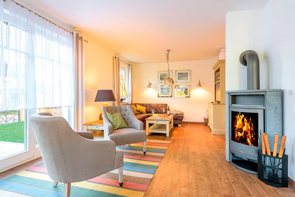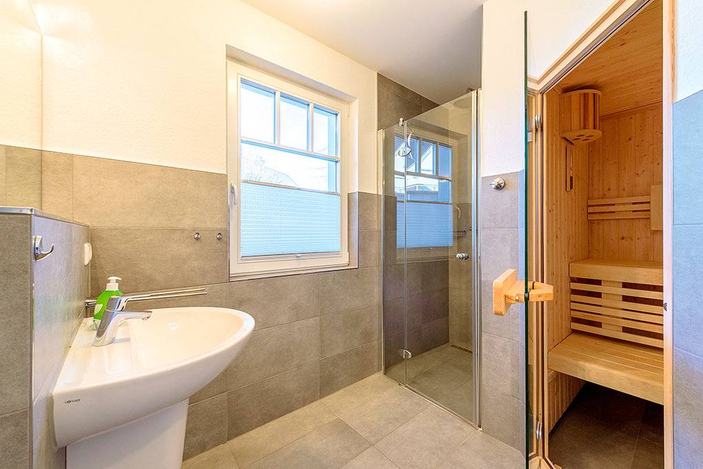 Haus: Exklusive Doppelhaushälfte mit Sauna und Kaminofen, 2016 neu erbaut. Das Haus besticht durch sein großes Platzangebot: 120 qm Wohnfläche, 4 Schlafzimmer, 2 Bäder. Gehobene Ausstattung mit moderner, geschmackvoller Einrichtung. Kostenloser Internetzugang über W-Lan. Zentralheizung. Nichtraucherhaus. Terrasse mit Sitzmöbeln, anschließend schöner eingezäunter Garten. 2 Pkw-Stellplätze am Haus.