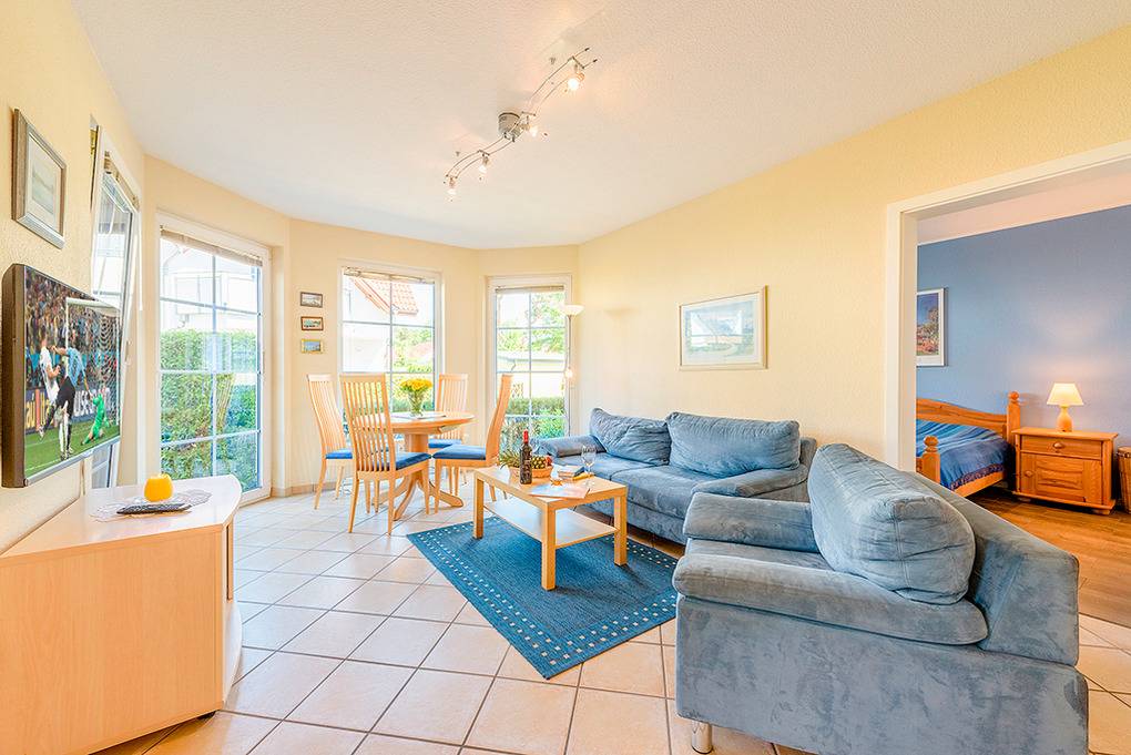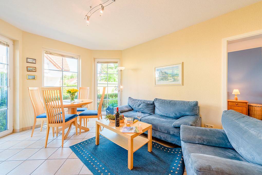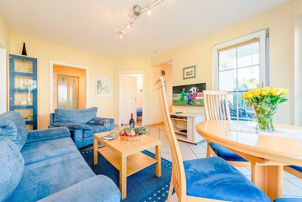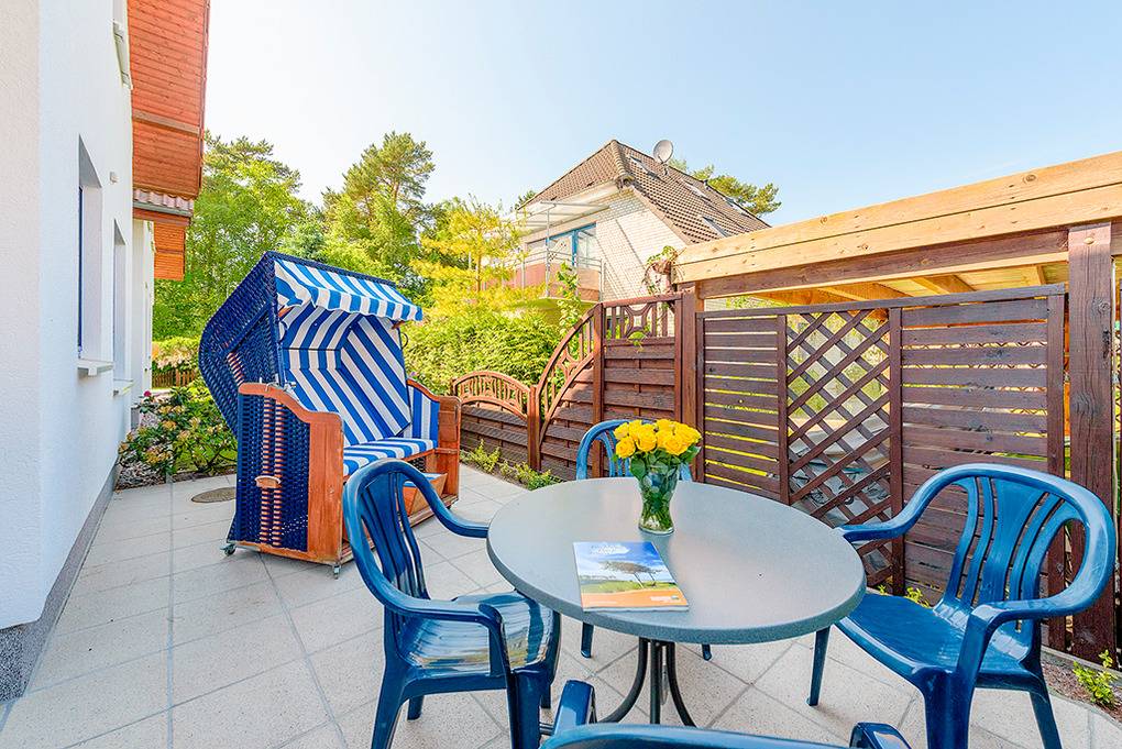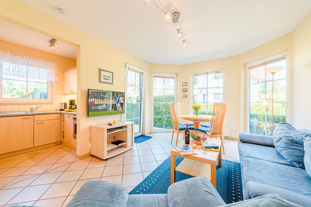 D 67.8109 Wohnung 1-4 Pers.: 3-Zimmerwohnung mit 50 qm Wohnfläche, Parterre. Heller, freundlicher Wohn-/Essraum mit gemütlicher Couchgarnitur, Sat-TV, Esstisch, moderner Küchenzeile (Backofen, Spülmaschine). 2 Doppelzimmer, eines davon mit französischem Bett (1,40 m). Bad: Du, Wb, WC, Waschmaschine. Terrasse mit Strandkorb.
