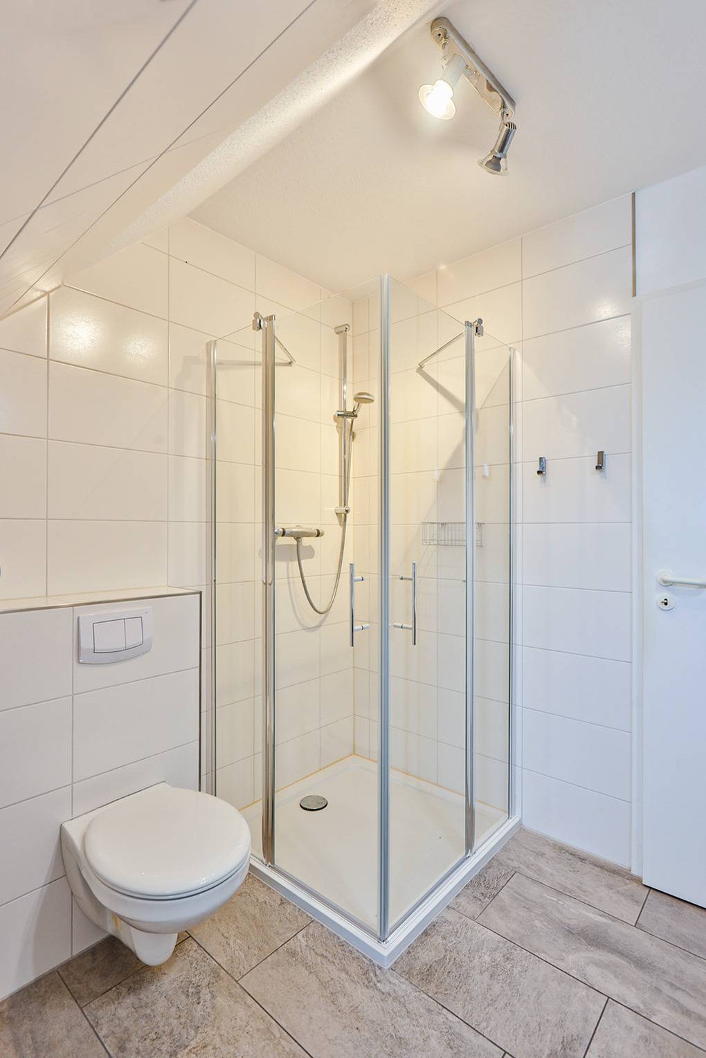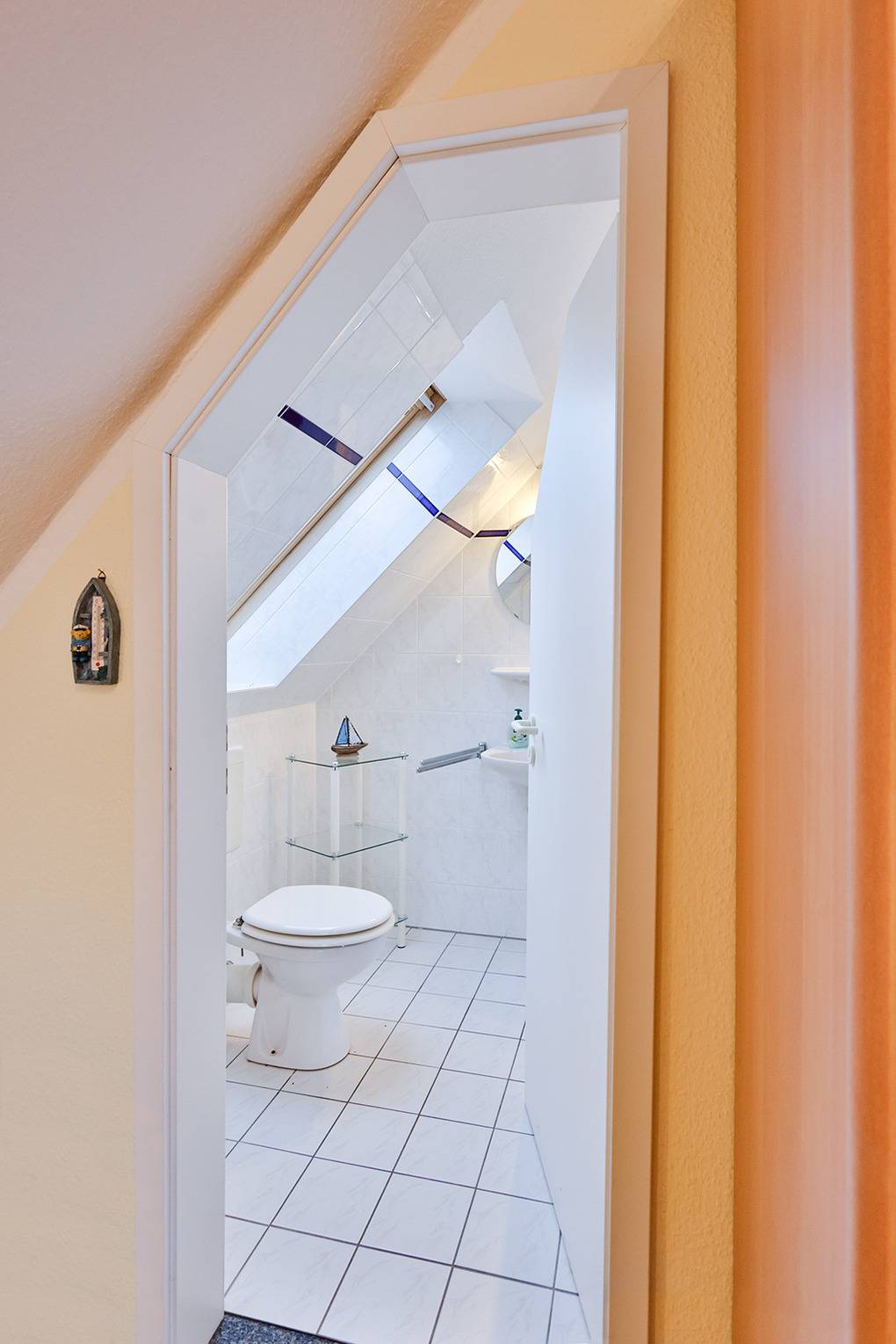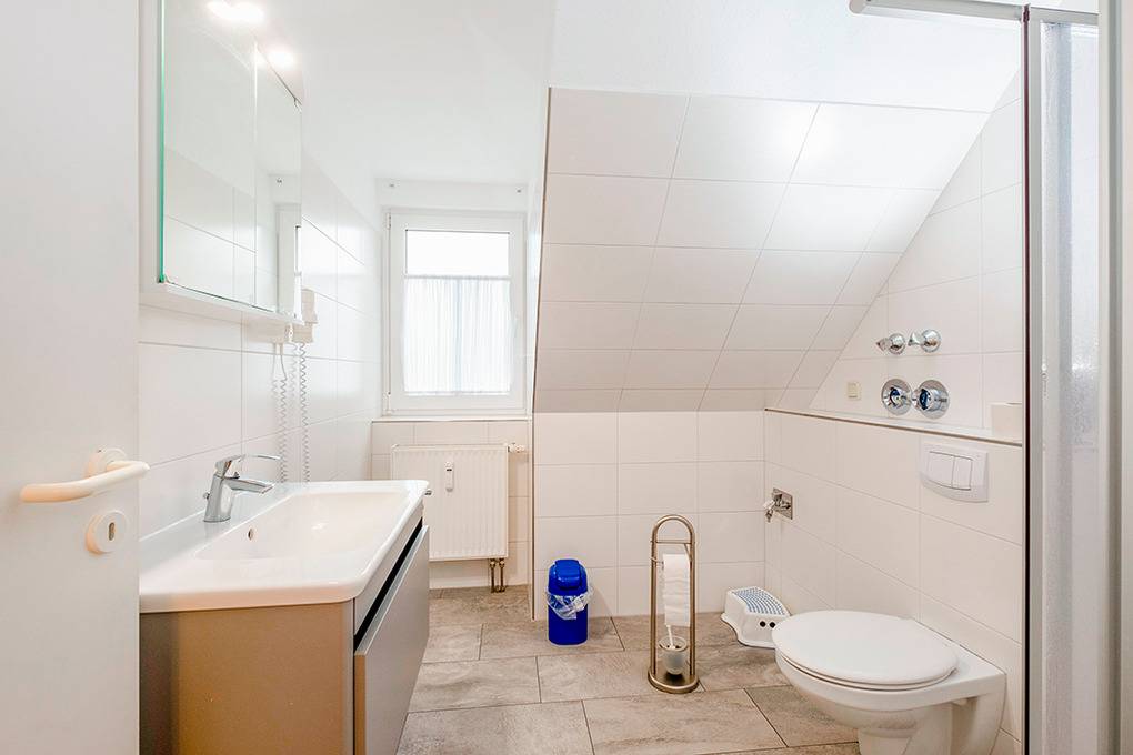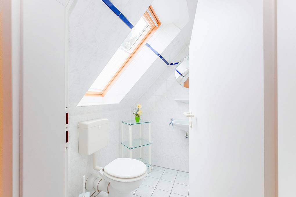 D 67.65 Wohnung 1-4 Pers.: 2-Zimmerwohnung mit 55 qm Wohnfläche über 2 Etagen, 1. Etage. Nichtraucherwohnung. Heller, freundlicher Wohn-/Essraum mit Couchgarnitur, Flachbild-Sat-TV, Radio/CD, Esstisch, thekenartig abgetrennter Küchenzeile (Backofen, Mikrowelle, Spülmaschine). Doppelzimmer. Bad/WC. Wendeltreppe ins ausgebaute Dachgeschoss: Galerie, offen zum Wohnraum, mit Doppelbett, separatem WC. Balkon mit Sitzmöbeln.