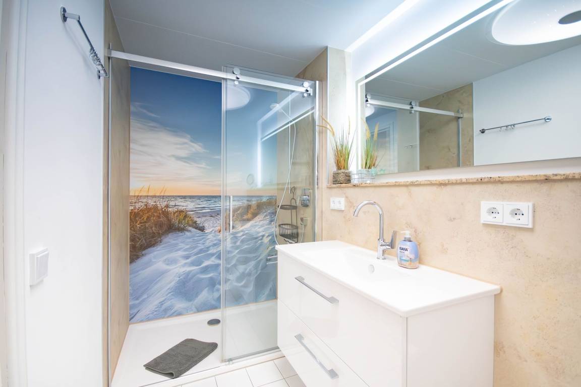 Badezimmer: Ein modernes Duschbad plus separates Gäste-WC