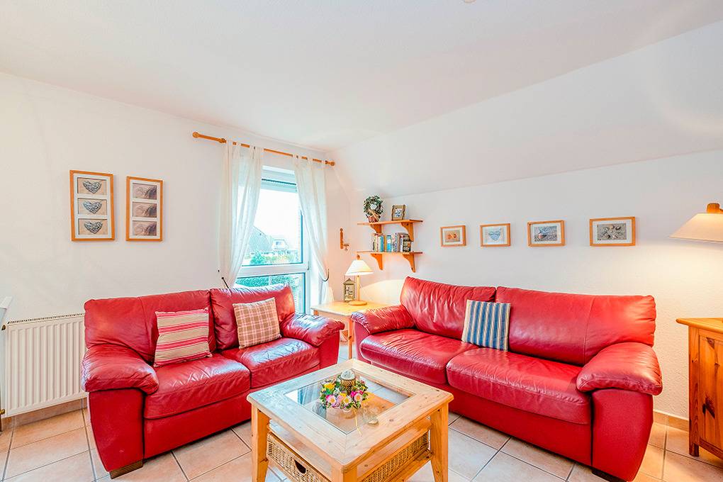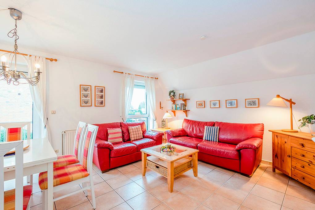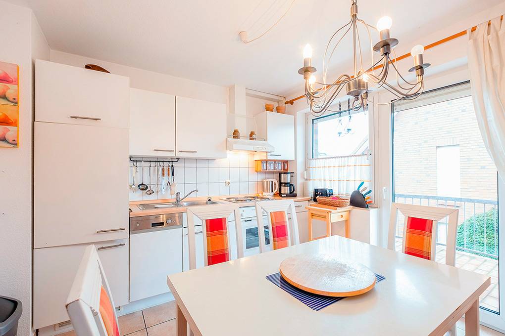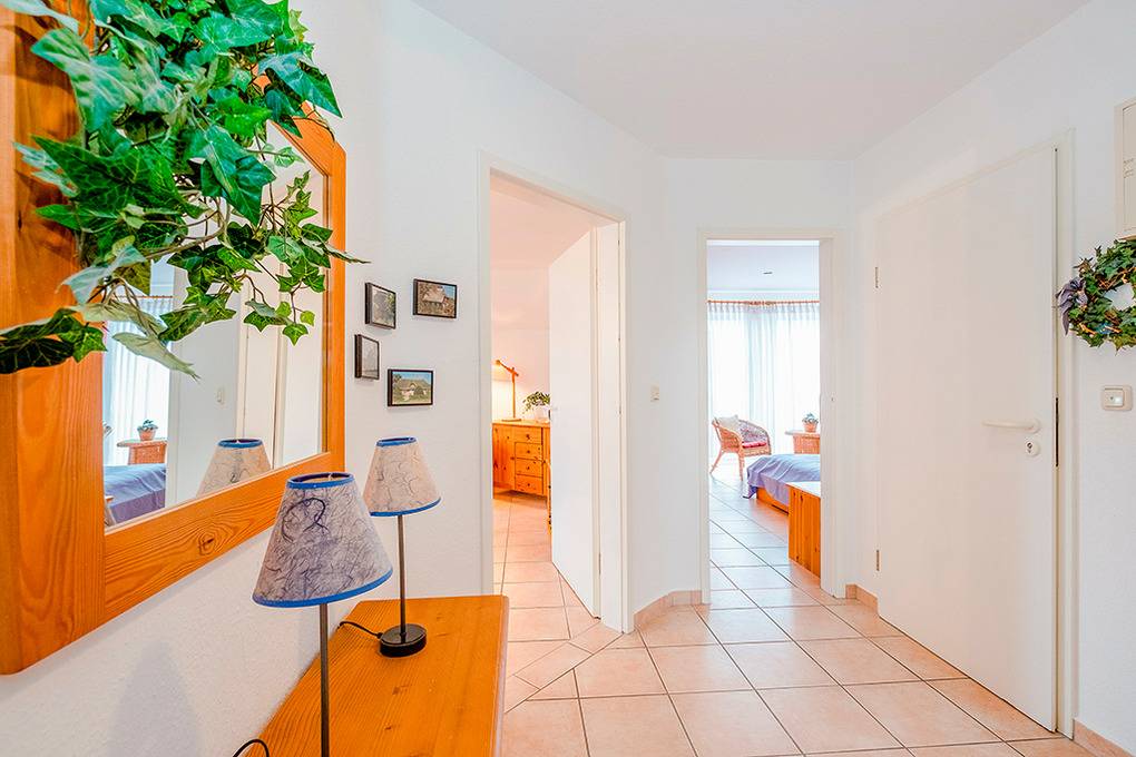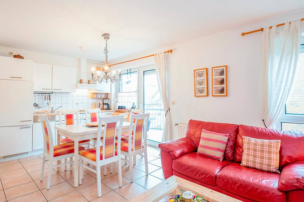 D 67.0209 Wohnung 1-4 Pers.: 3-Zimmerwohnung mit 62 qm Wohnfläche, 1. Etage. Wohn-/Essraum mit Couchgarnitur, Sat-TV, Esstisch, Küchenzeile (Backofen, Spülmaschine). Zwei Doppelzimmer. Bad/WC. Balkon.