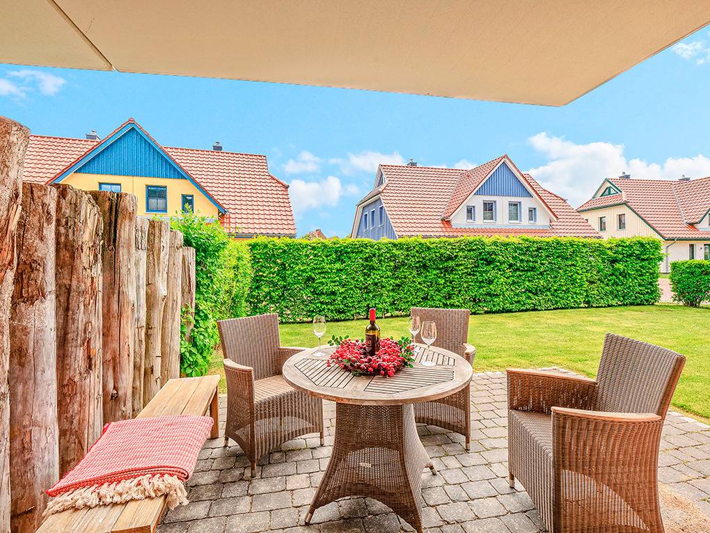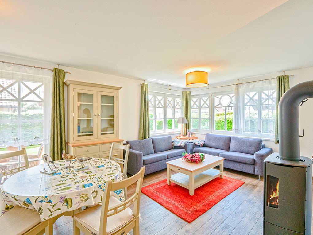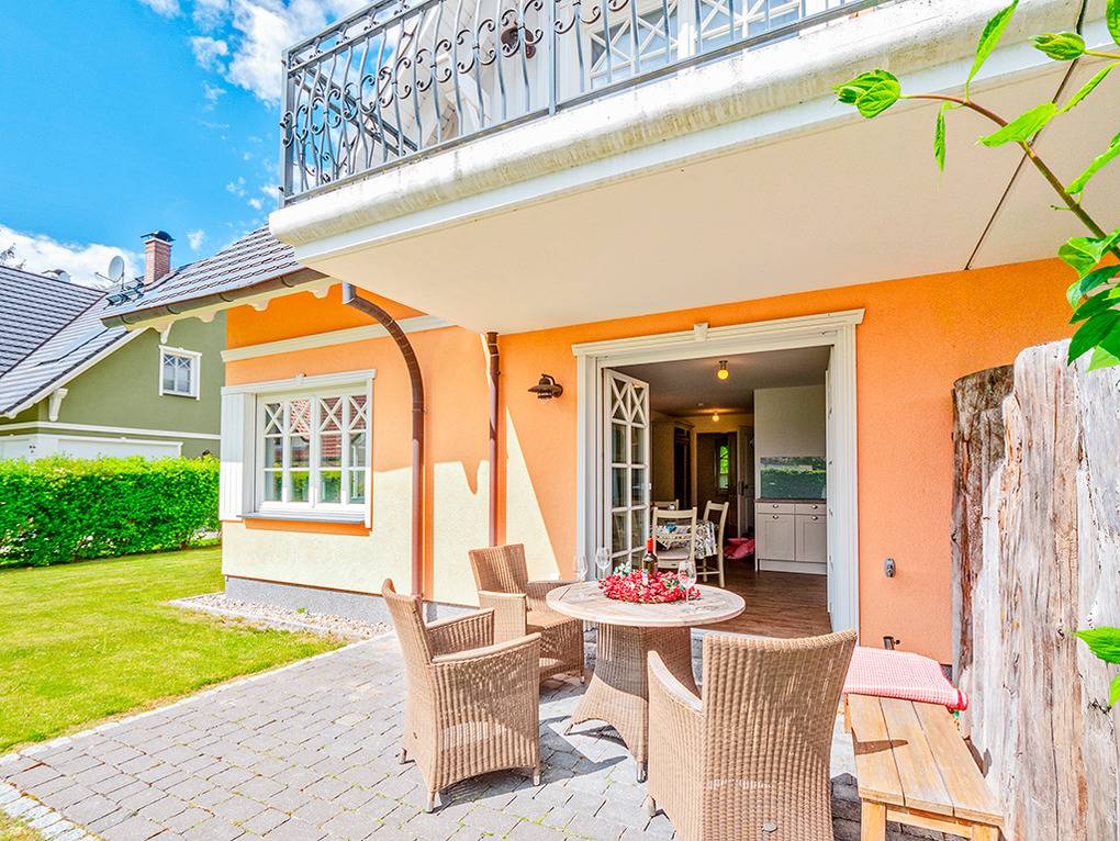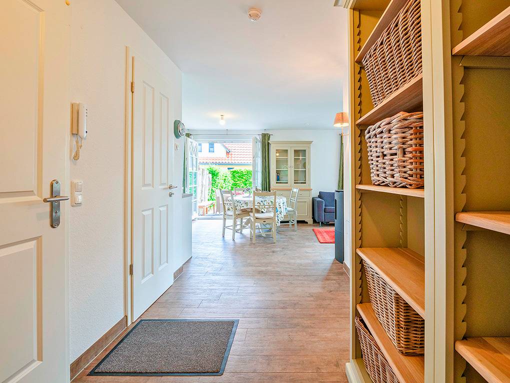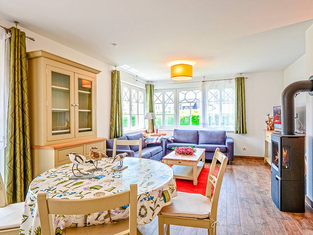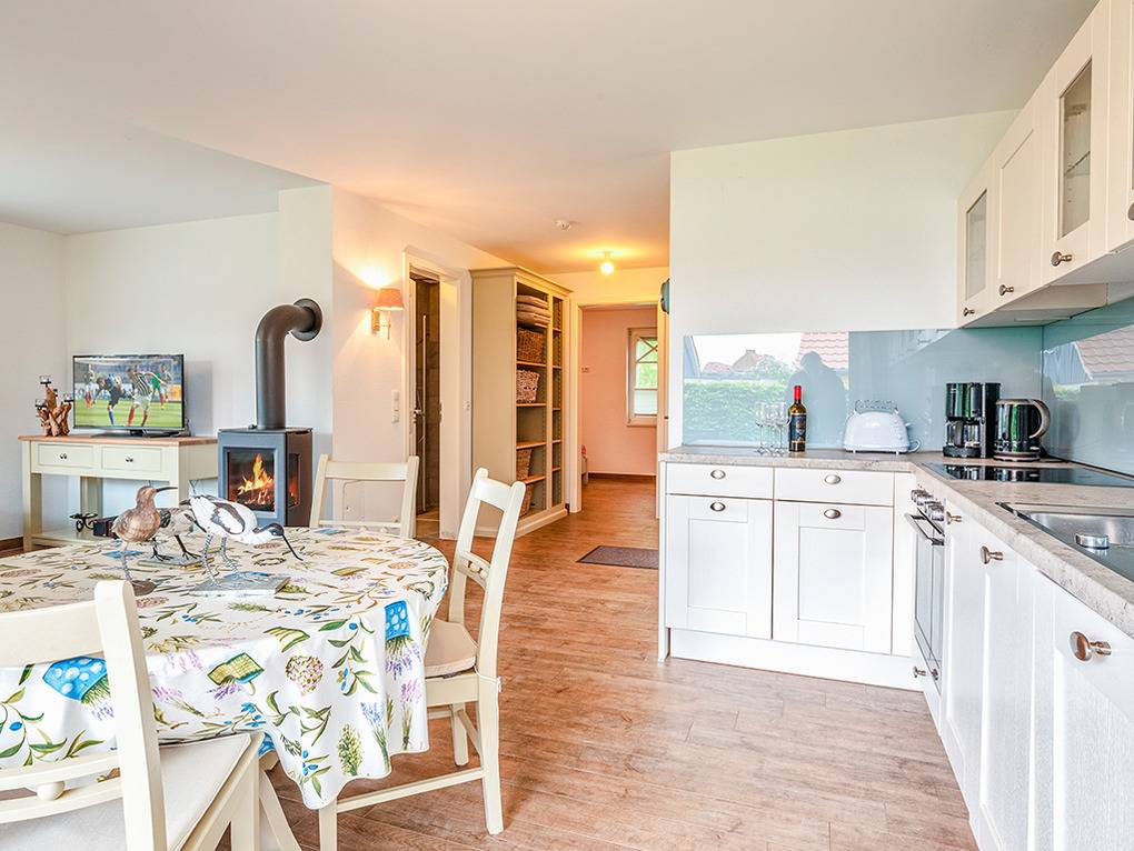 Haus: Regionstypisches Darßer Apartmenthaus, 2014 neu erbaut. Vier geschmackvoll eingerichtete, komfortable Ferienwohnungen im Landhausstil. Jede Fewo mit Kaminofen, Sat-TV, DVD, Stereoanlage, Terrasse mit Garten oder Balkon (jeweils mit Sitzmöbeln). Nichtraucherwohnungen. Kostenloser Internetzugang über W-Lan. Zentralheizung. Waschmaschine, Trockner im Haus (Gebühr). 1 Pkw-Stellplatz, 1 Fahrradschuppen pro Fewo.