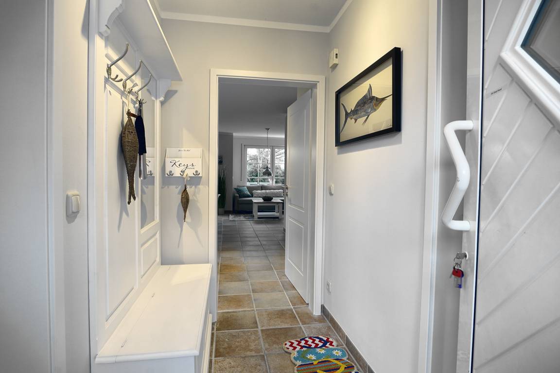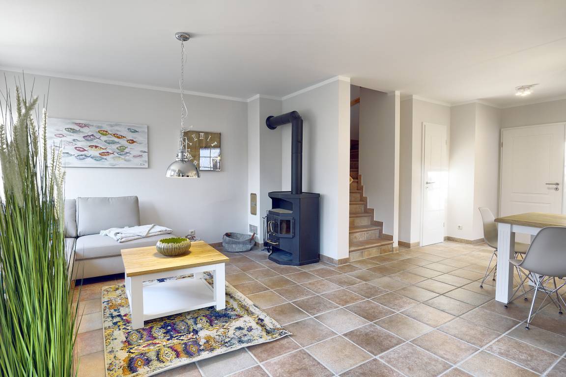 Dieses geschmackvoll ausgestattete Ferienhaus in strandnaher, ruhiger Lage bietet Platz für 2-8 Personen, (5 Zimmer, 110 qm). Eine liebevoll zusammengestellte Ausstattung sorgt für Wohlbehagen. Das Haus verfügt über 1 Wohn/Esszimmer mit Kamin, 4 Schlafzimmer, komplett ausgestattete Küchenzeile inkl. Geschirrspüler, 2x Bad mit Dusche/WC, TV mit SAT-Anschluss und Radio, Terrasse, Garten sowie eine Sauna. 1 Stellplatz für Ihren PKW rundet das Platzangebot ab. Bettwäsche und Handtücher werden einmalig gestellt, Waschmaschine vorhanden, Nichtraucher.