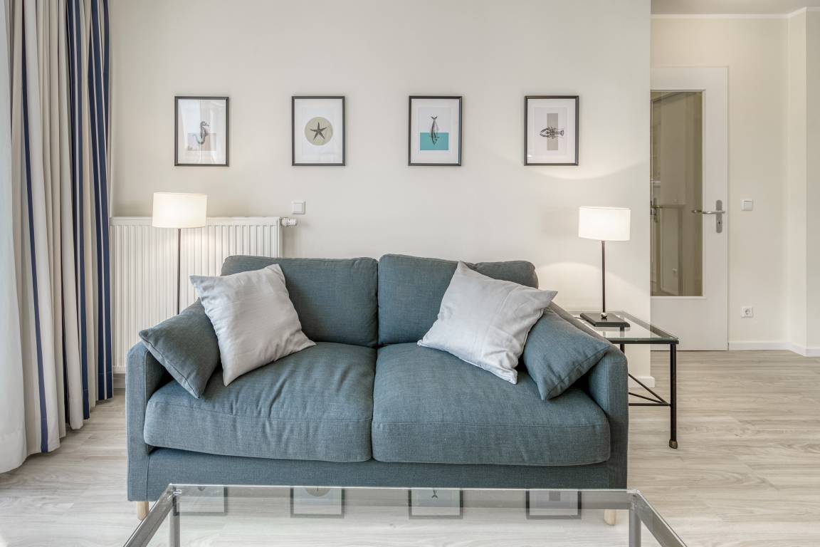 Die Ferienwohnung Strandnah bietet auf 41 m² Platz für bis zu 2 Personen. Sie erreichen die Wohnung im zweiten Obergeschoss über eine Treppe. Der Wohnbereich und die gesamte Wohnung sind mit einem eleganten Laminatboden ausgestattet.