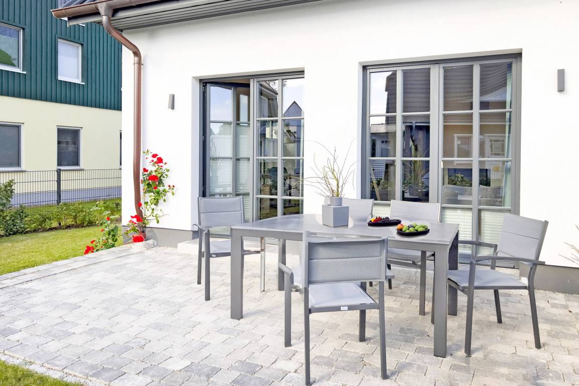 Südwest-Terrasse mit Gartenmöbeln für sonnige Stunden