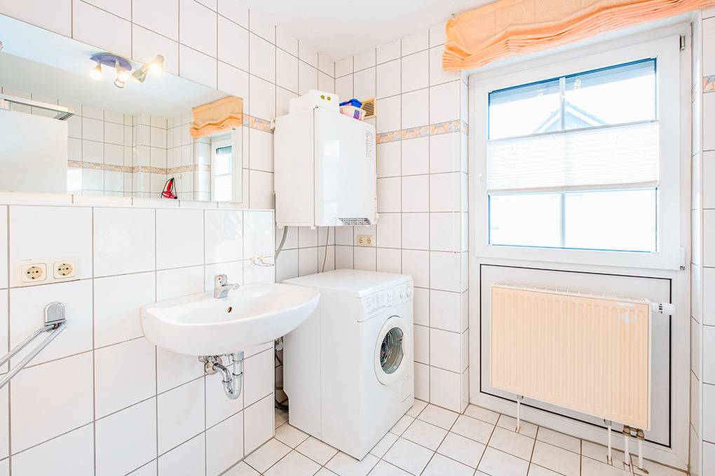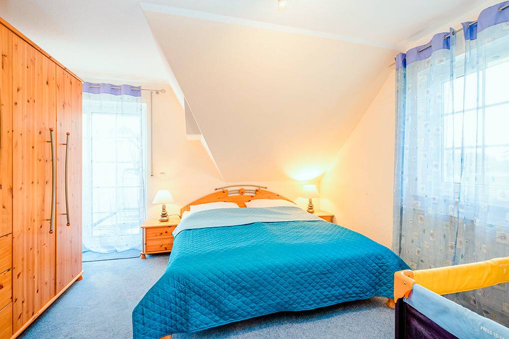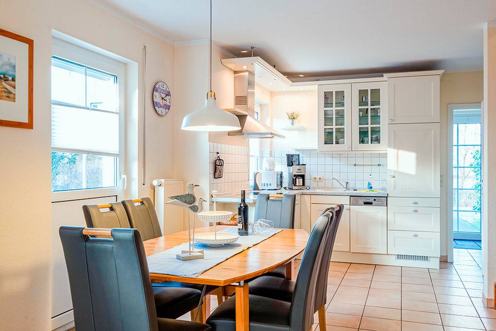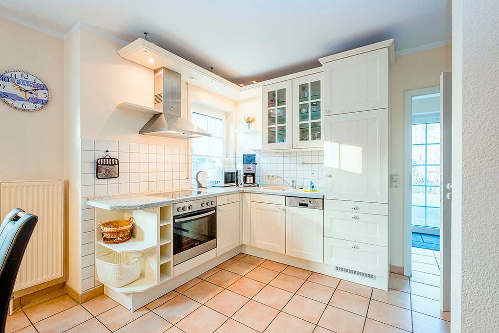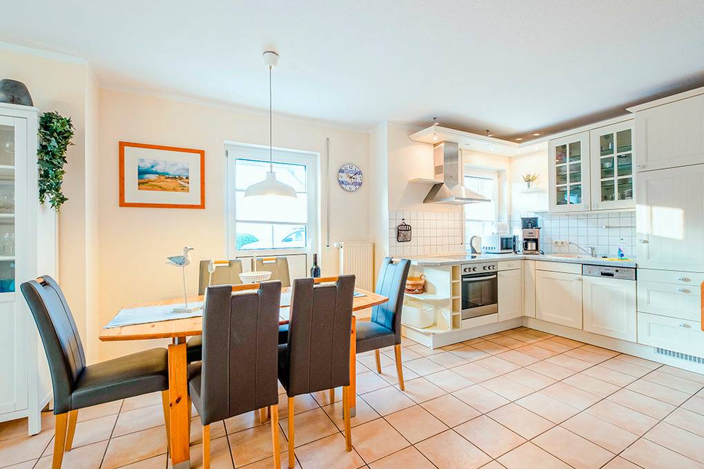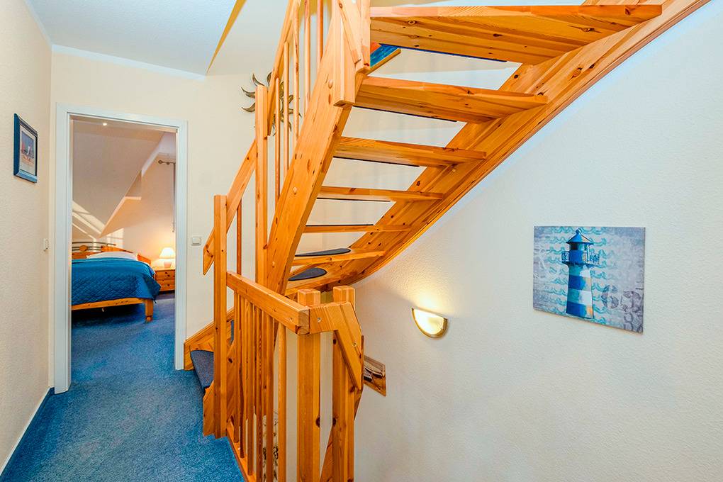D 67.4103 Ferienhaus 1-6 Pers.: 4-Zimmerhaushälfte mit 85 qm Wohnfläche über 3 Etagen. Parterre: Geräumiger Wohn-/Essraum mit gemütlicher Couchgarnitur, Sat-TV, Esstisch, Einbauküche (Backofen, Spülmaschine). Bad/WC. 1. Etage: 2 Doppelzimmer. Bad/WC. Treppe in den offenen Spitzboden: Doppelzimmer.