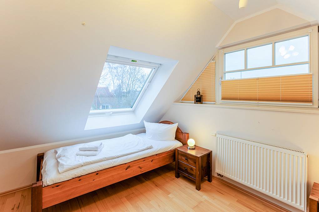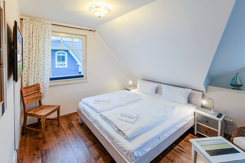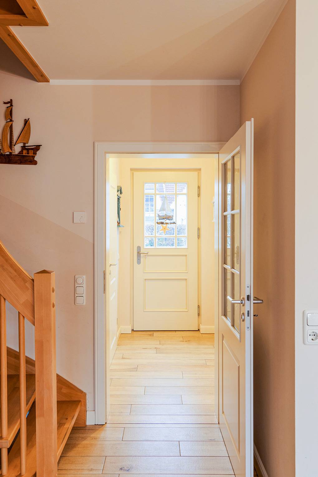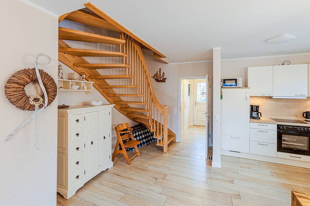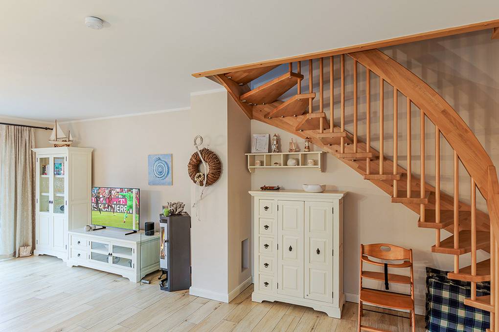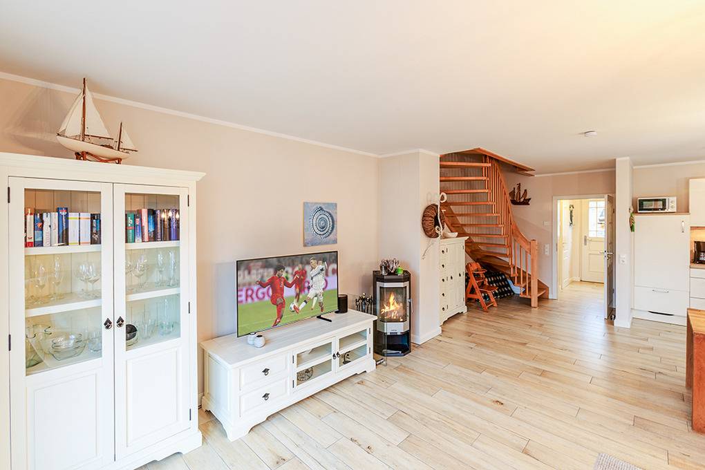 D 67.111A Ferienhaus 1-6 Pers.: Großzügige 4-Zimmerhaushälfte mit 100 qm Wohnfläche über 3 Etagen. Parterre: Heller, freundlicher Wohn-/Essraum mit gemütlicher Couchgarnitur, Kaminofen, Sat-TV (Smart-TV), Esstisch, moderner, gut ausgestatteter Einbauküche (Backofen, Mikrowelle, Spülmaschine). Hauswirtschaftsraum mit Waschmaschine. Bad: Dusche, Waschbecken, WC. 1. Etage: Doppelzimmer mit Sat-TV. Weiteres Doppelzimmer. Großes Bad mit barrierefreier Dusche, Waschbecken, WC. 2. Etage mit Dachschrägen: 2-Bettzimmer.