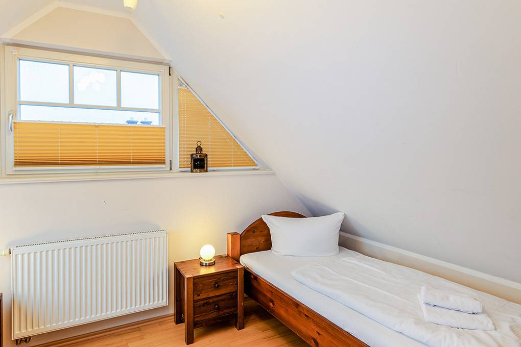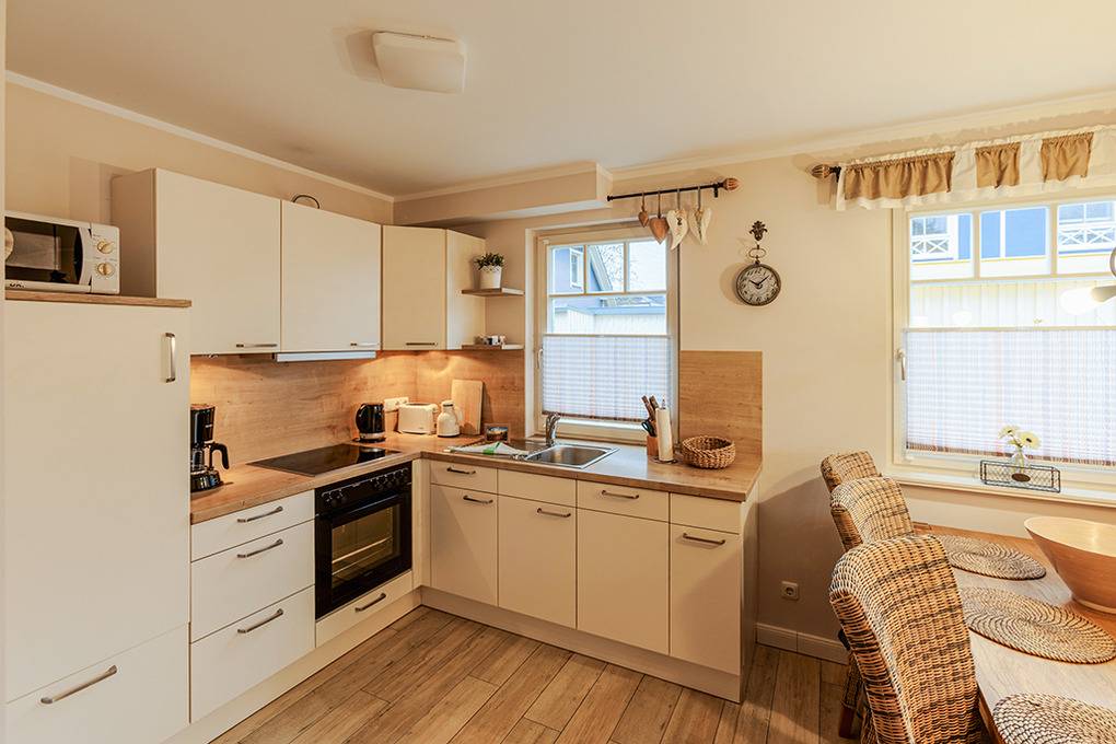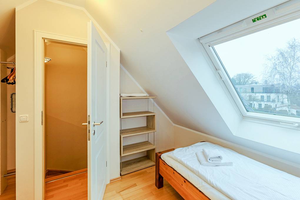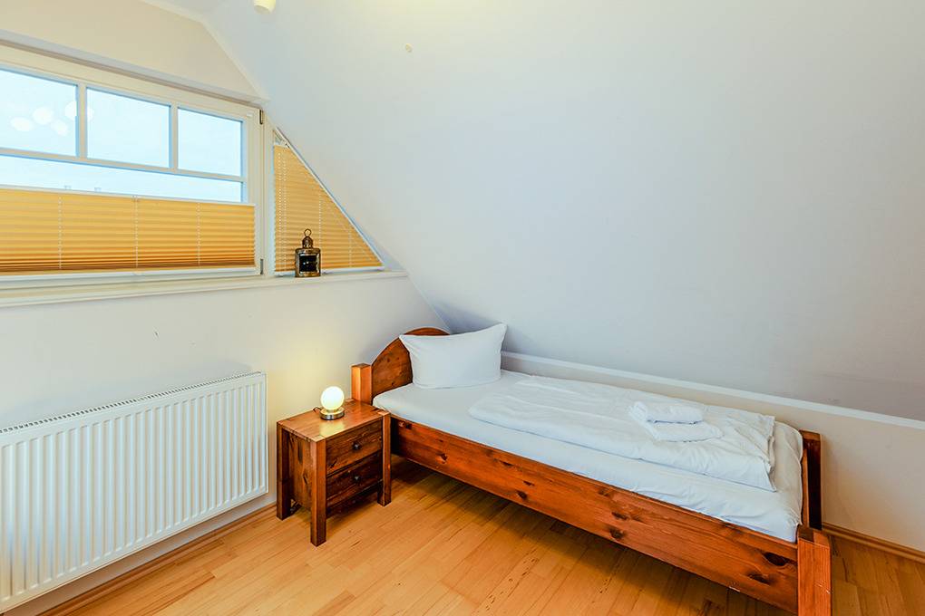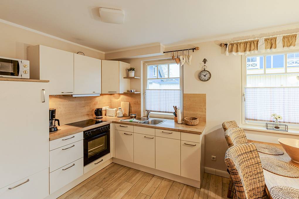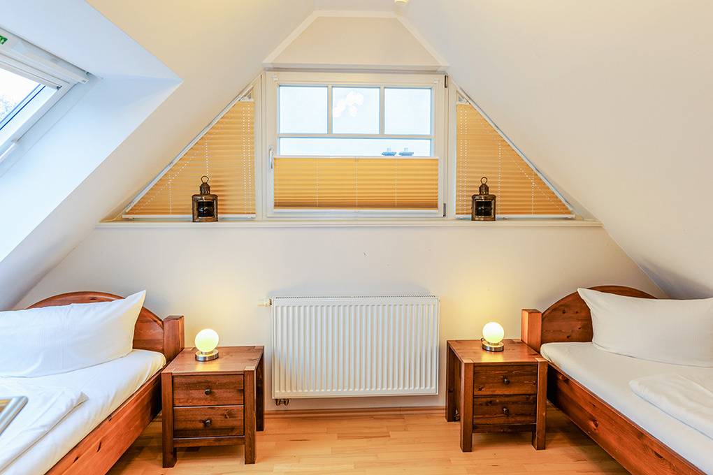 D 67.111A Ferienhaus 1-6 Pers.: Großzügige 4-Zimmerhaushälfte mit 100 qm Wohnfläche über 3 Etagen. Parterre: Heller, freundlicher Wohn-/Essraum mit gemütlicher Couchgarnitur, Kaminofen, Sat-TV (Smart-TV), Esstisch, moderner, gut ausgestatteter Einbauküche (Backofen, Mikrowelle, Spülmaschine). Hauswirtschaftsraum mit Waschmaschine. Bad: Dusche, Waschbecken, WC. 1. Etage: Doppelzimmer mit Sat-TV. Weiteres Doppelzimmer. Großes Bad mit barrierefreier Dusche, Waschbecken, WC. 2. Etage mit Dachschrägen: 2-Bettzimmer.