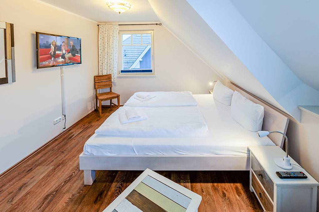 Nebenkosten 45,50 €/Pers. (werden bei Buchung erhoben). Kurtaxe. Bettwäsche leihbar 13 €/Pers (Bestellung, wird bei Buchung erhoben). Handtücher leihbar 9 €/Pers (Bestellung, wird bei Buchung erhoben). Zusätzliche Leistungen 2 Pkw-Stellplätze im Preis inklusive. Kostenloser Internetzugang über W-Lan. Kinder Babybett/Hochstuhl zusätzlich zur maximalen Personenzahl, jeweils ohne Berechnung (Bestellung). Haustier nicht erlaubt.Räume & Aufteilung