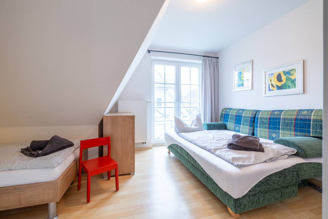 Im Dachgeschoss das 3te Schlafzimmer mit 2 Einzelbetten.